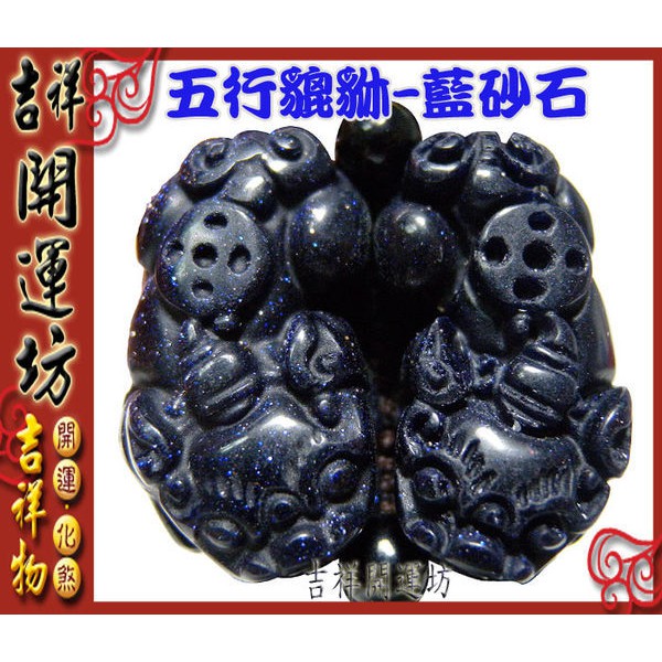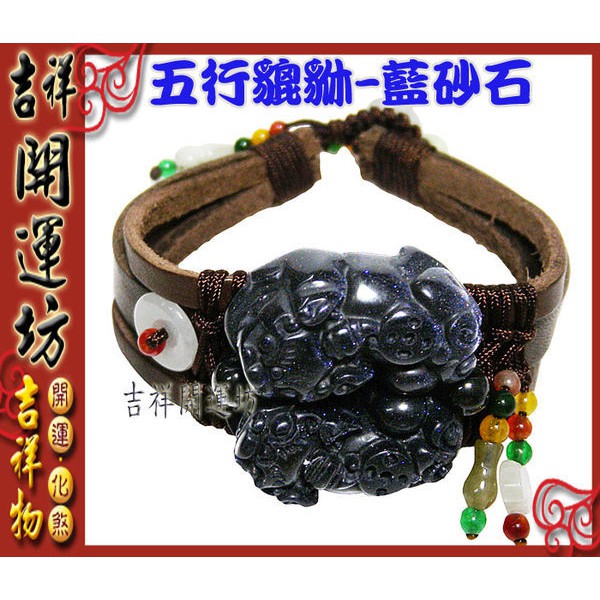 【吉祥開運坊】貔貅手環【招財 藍沙石貔貅手環 附皮革手環】開光 淨化