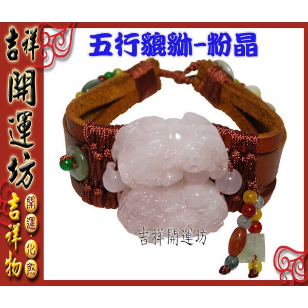 【吉祥開運坊】貔貅手環【招財 粉晶貔貅手環 附皮革手環】開光 淨化