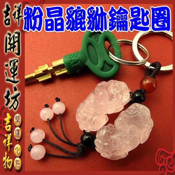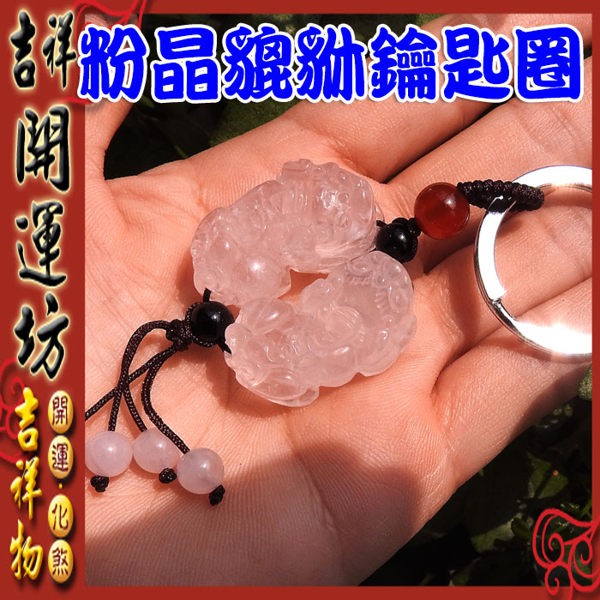 【吉祥開運坊】貔貅吊飾【招財最佳商品 粉晶貔貅 中型 貔貅鑰匙扣】開光擇日