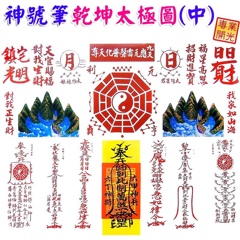 【吉祥開運坊】諺鴻坊山海鎮【居家化煞 耐用鋁框 神號筆乾坤太極圖 中型 5號 乾坤太極八卦圖】開光 擇日