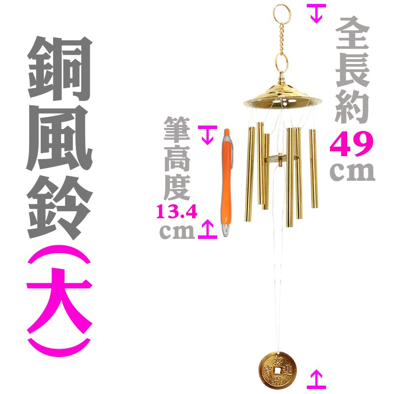 【吉祥開運坊】化煞銅鈴 鎮宅【居家 陽宅 化五黃煞 解三煞 銅風鈴 大型 有6根銅管 】硃砂淨化