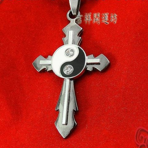 【吉祥開運坊】辟邪 保平安【太極十字架 鈦鋼鑲鑽太極十字架 項鍊】淨化 擇日