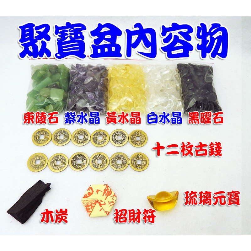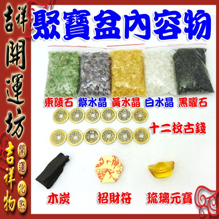 【吉祥開運坊】DIY系列【聚寶盆專用 聚寶盆內容物 五色水晶 5包 附12枚古錢 】淨化