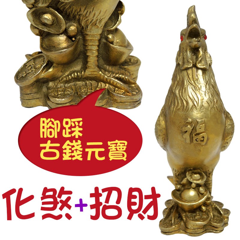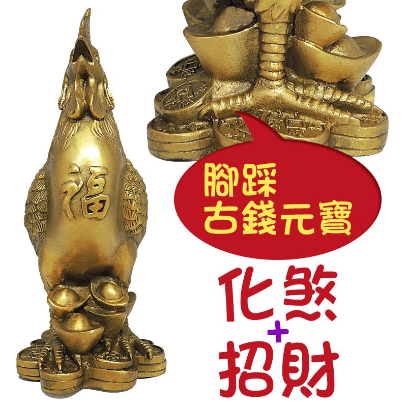 【吉祥開運坊】銅雕系列【化煞銅公雞 有大中小尺寸 踩古錢 化電線 蜈蚣煞 招財】開光 擇日