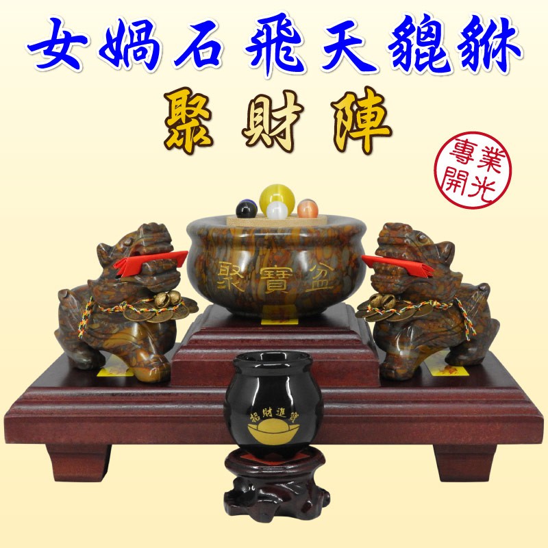 【吉祥開運坊】貔貅系列【女媧石飛天貔貅中型 附凸座 七星聚寶盆 供杯 】開光