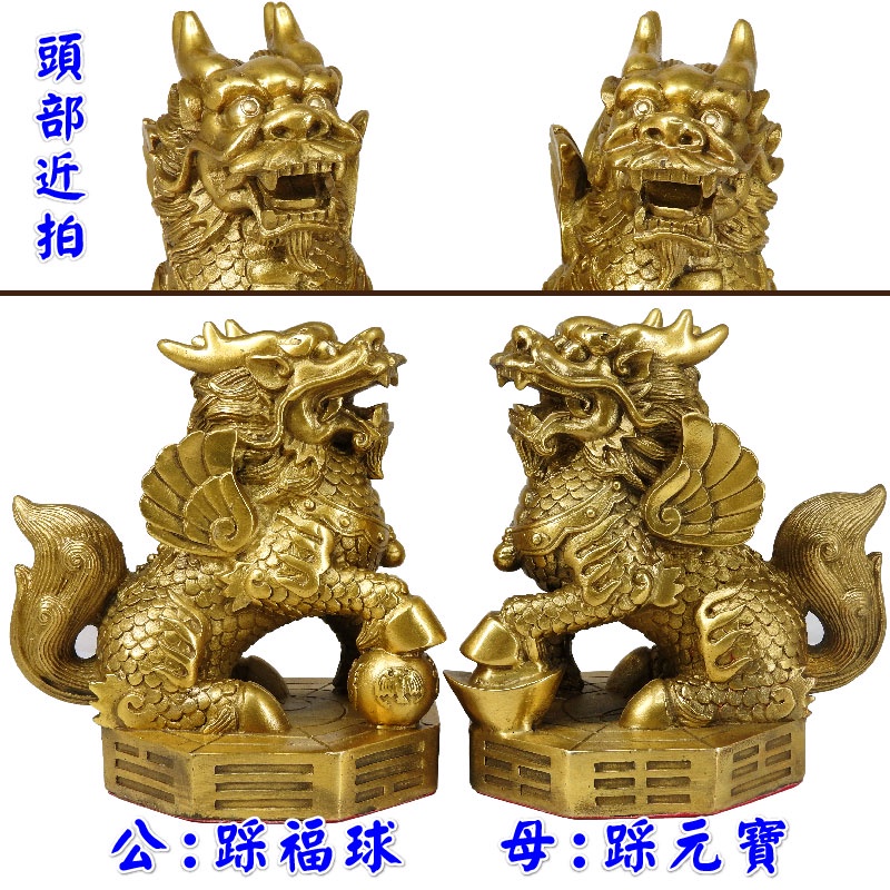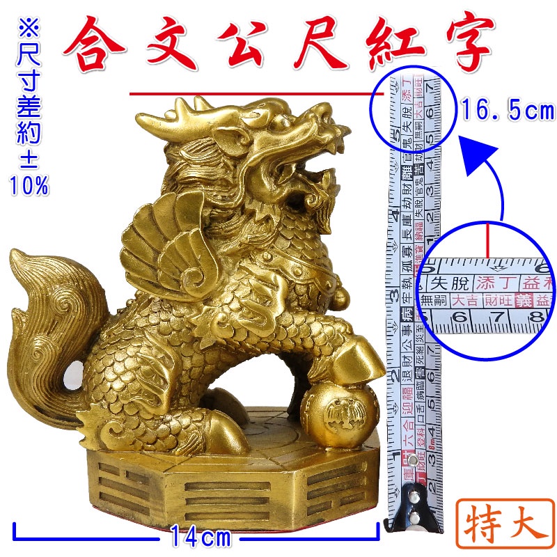 【吉祥開運坊】麒麟系列【鎮宅飛天麒麟踩八卦大型 高16.5cm 銅製麒麟踩八卦 化煞 化樑 又招財】開光