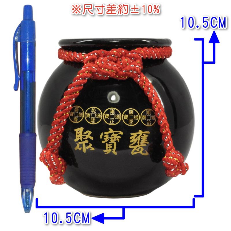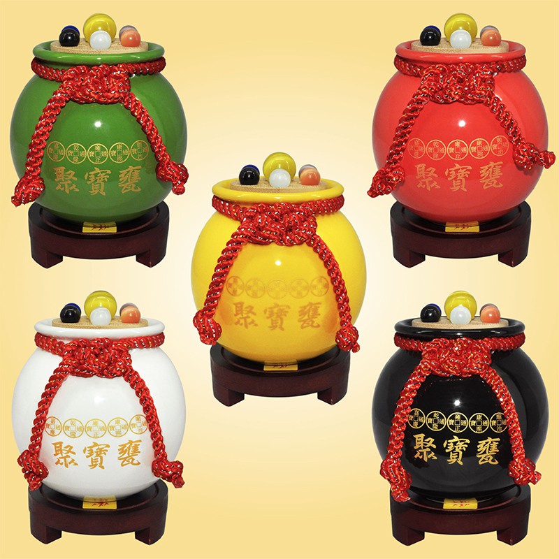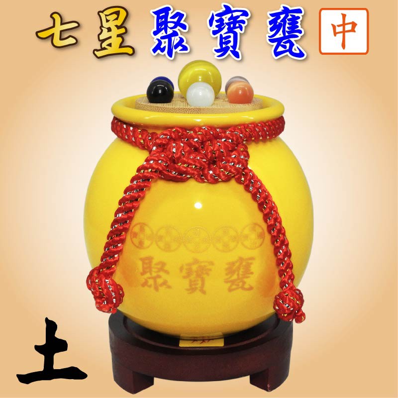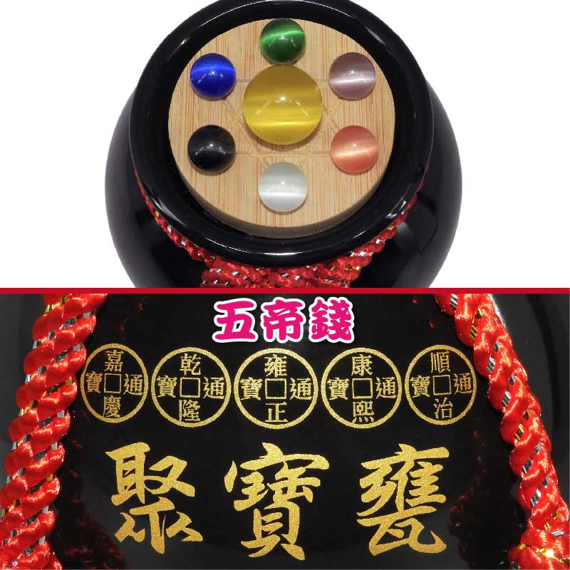 【吉祥開運坊】【聚財聖品七星五帝錢聚寶盆中型 附木底座 陶瓷聚寶甕 五色可供選擇】開光 擇日