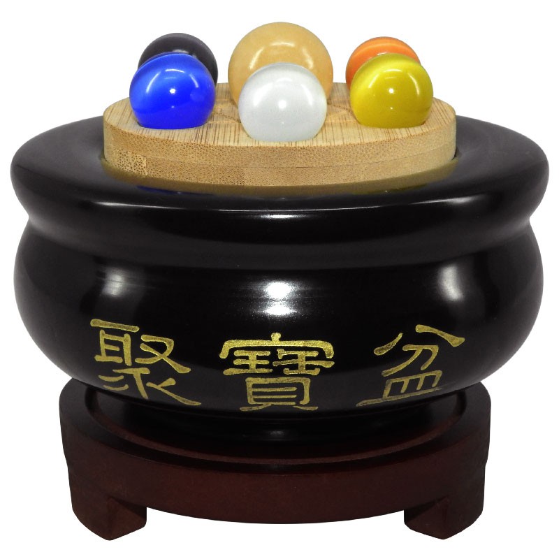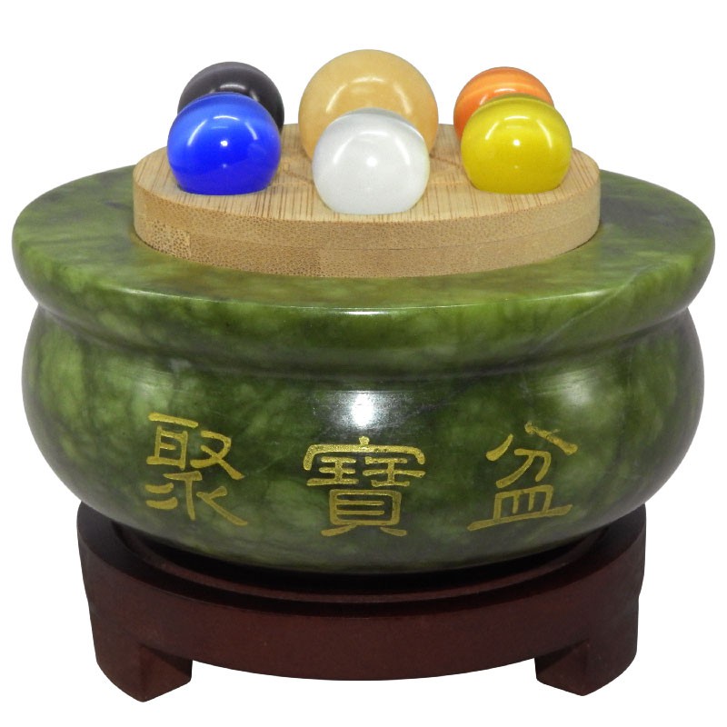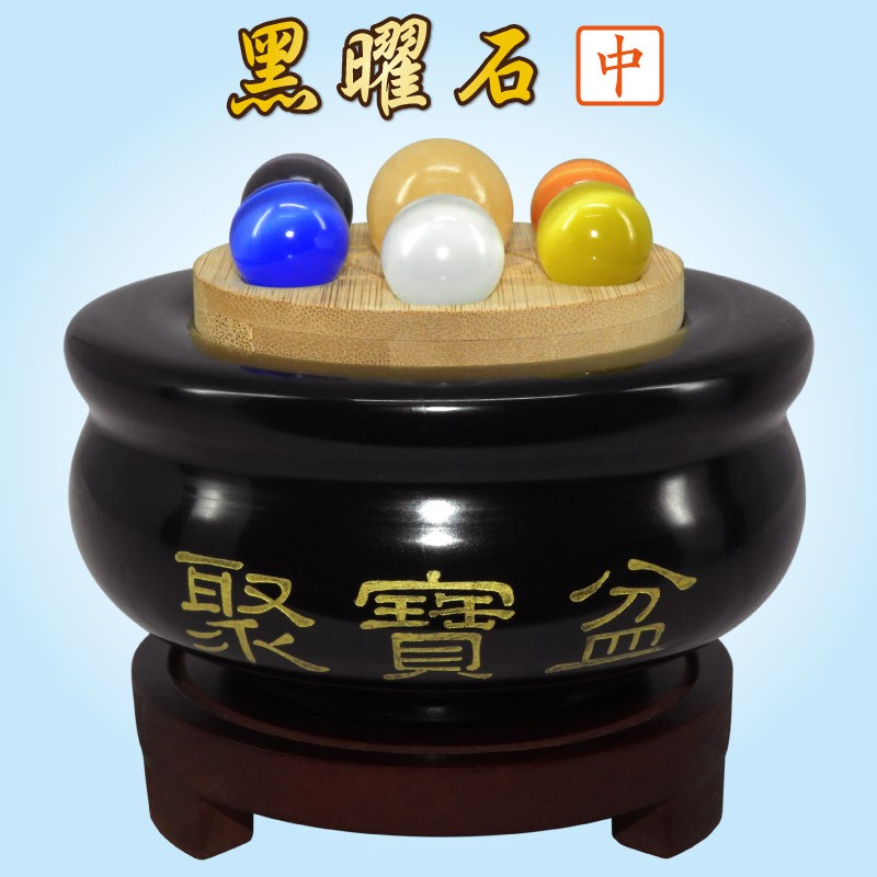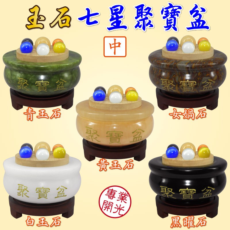 【吉祥開運坊】七星聚寶盆【貓眼石七星陣玉石聚寶盆中型 附木座 鎮財+聚財】開光 擇日