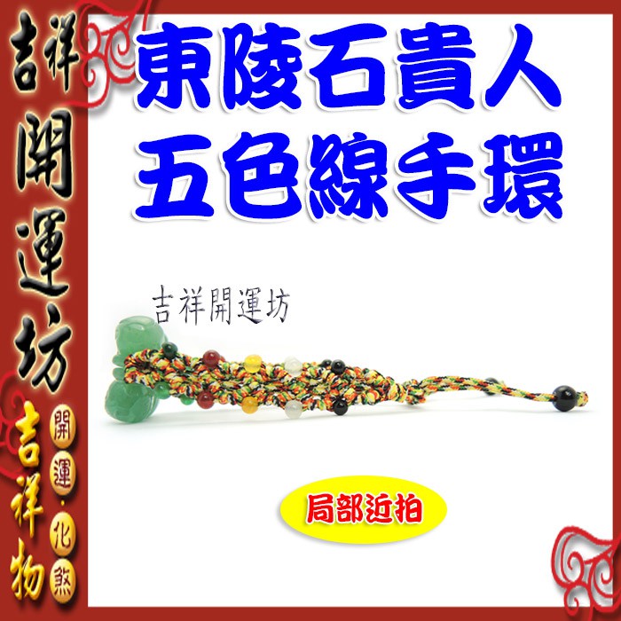 【吉祥開運坊】貴人手環【東陵玉 東陵石招財納福招貴人 玉等於遇貴人 手環是五色線 】開光