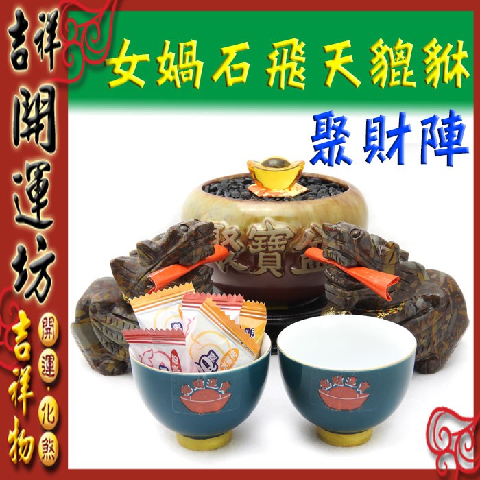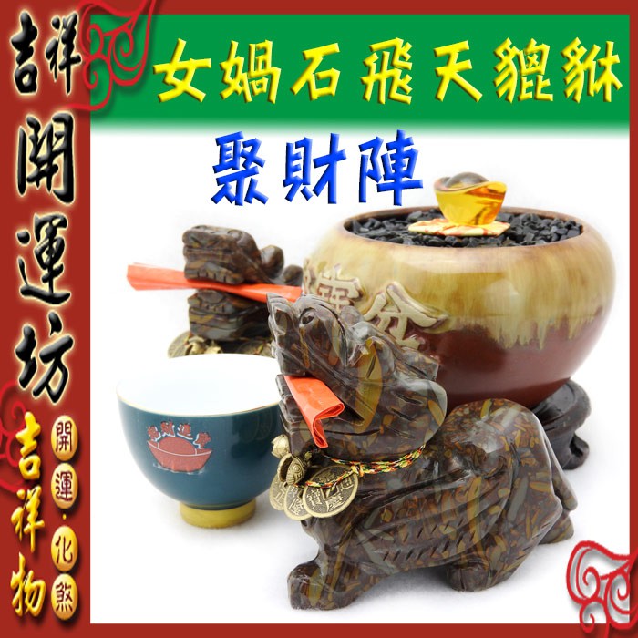 【吉祥開運坊】貔貅系列【女媧石飛天貔貅 中 陶瓷聚寶盆 貔貅聚財陣 1組 】開光 擇日