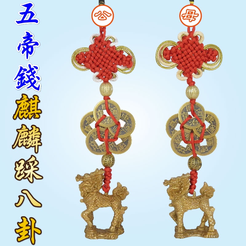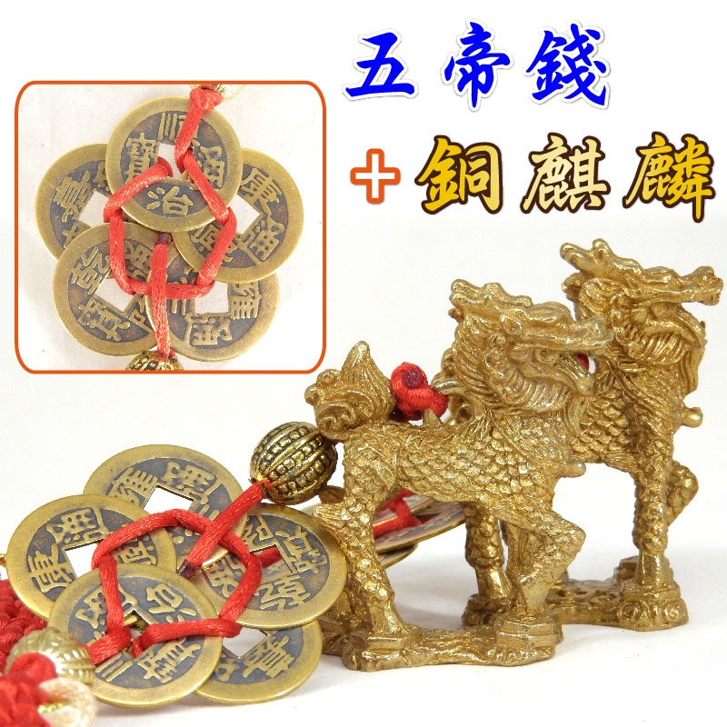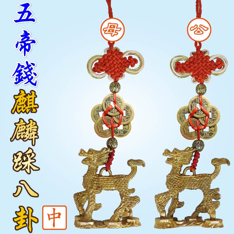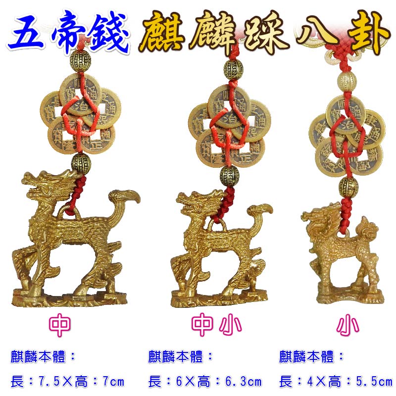 【吉祥開運坊】【五帝錢銅麒麟踩八卦 1對 化樑 樑壓門 穿心煞 將煞氣轉財氣 有三款尺寸】開光 擇日