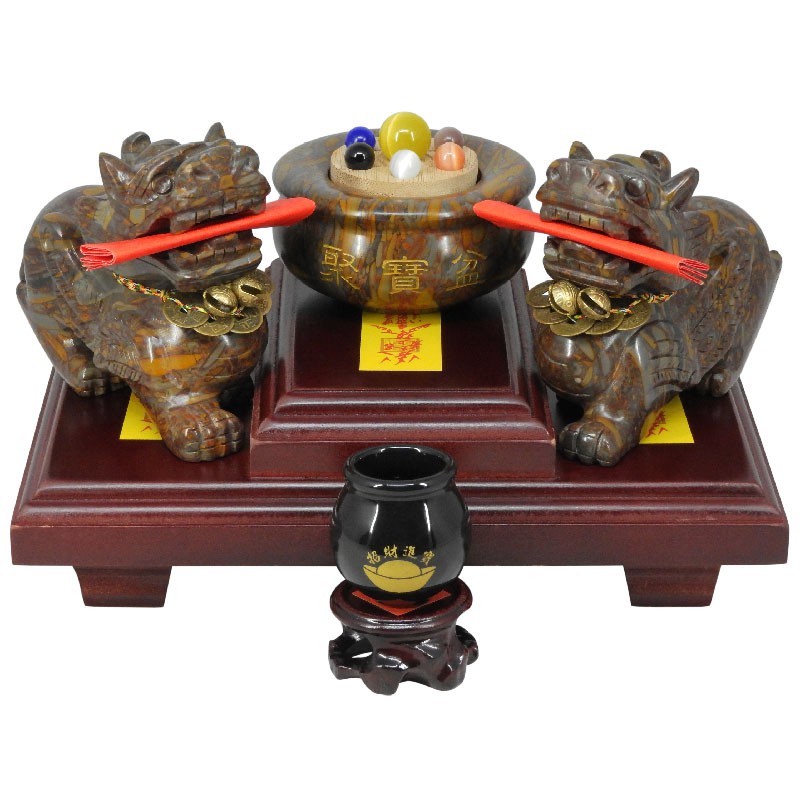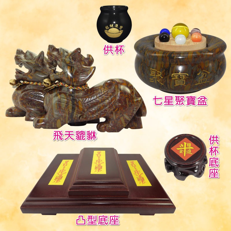 【吉祥開運坊】貔貅聚財陣【招財女媧石飛天貔貅大型 附聚財七星女媧石聚寶盆 凸字木座 供杯】開光 擇日
