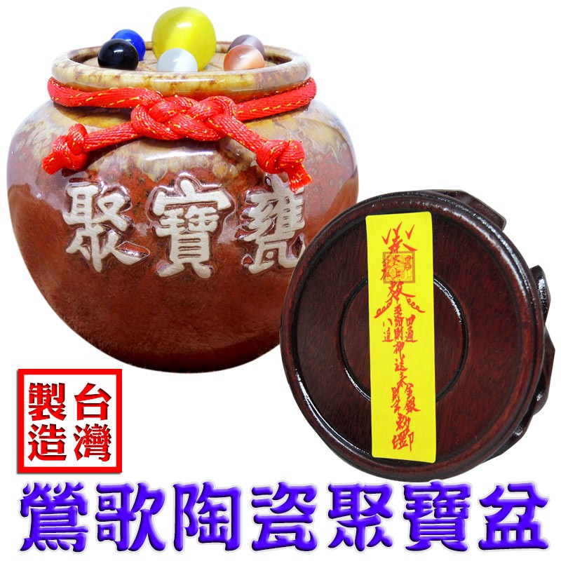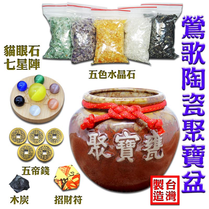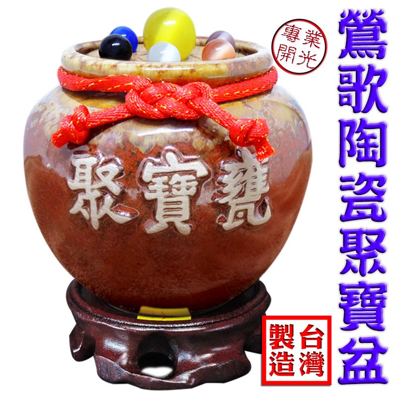 【吉祥開運坊】聚寶盆【七星聚寶甕 附七星陣 聚寶盆 水晶石 木座】開光 擇日