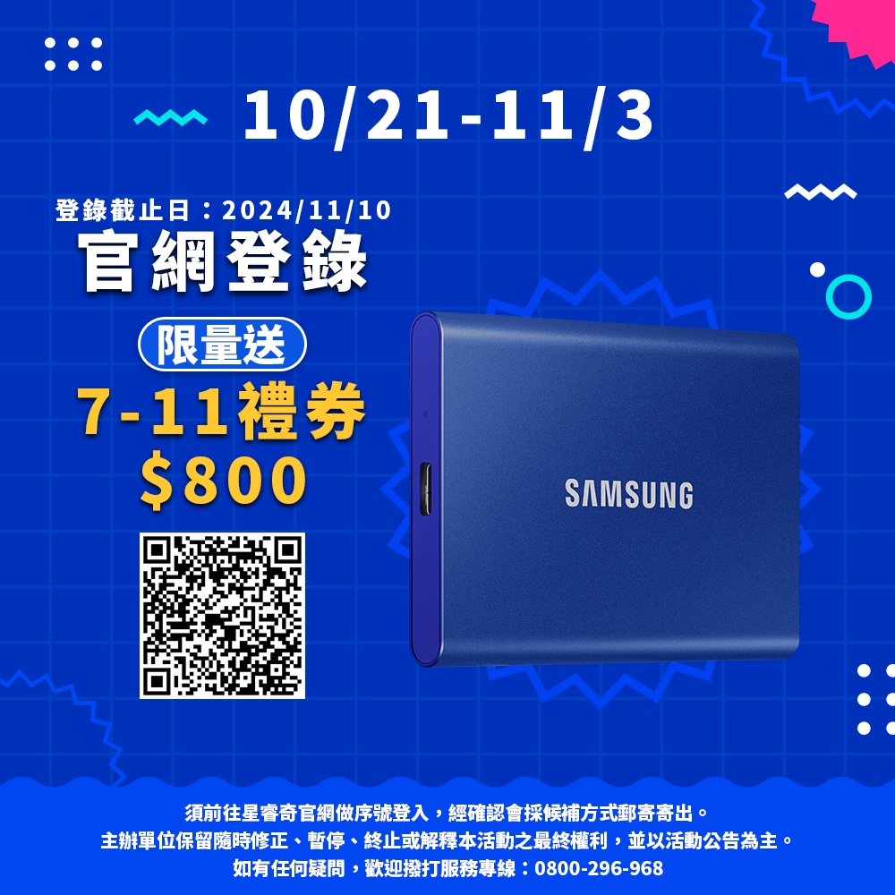 SAMSUNG三星 T7 2TB USB 3.2 移動固態硬碟 靛青藍 MU-PC2T0H/WW