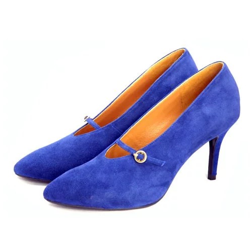 S&T STUDIO Chalotte 復古V型高跟鞋-深藍