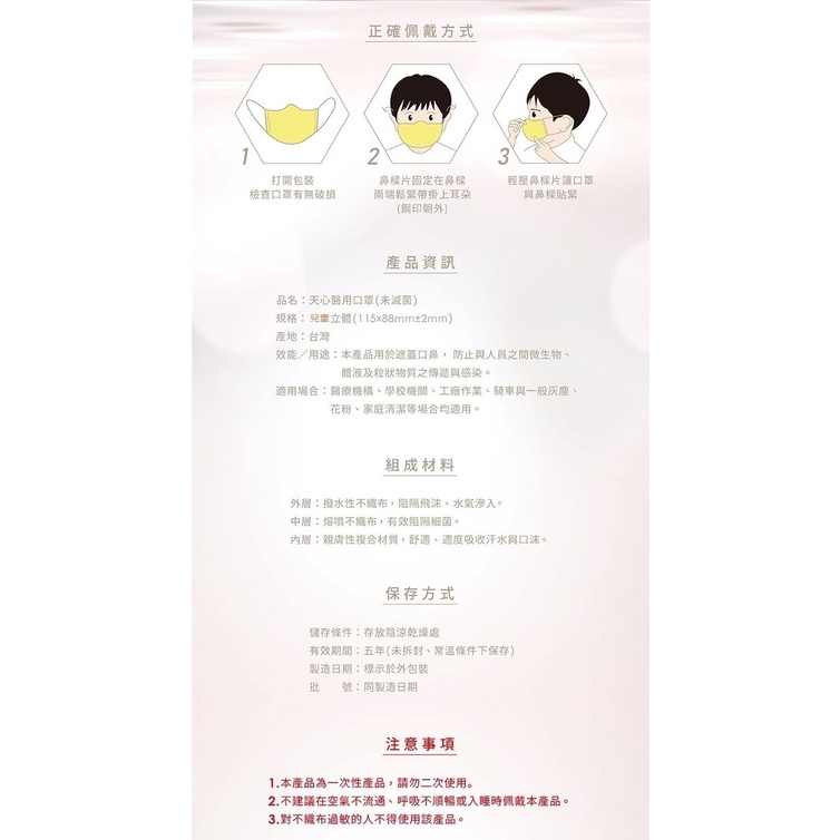 天心 兒童3D立體醫療口罩 5-8歲 莫蘭迪系列 粉嫩圖案系列 新寵兒