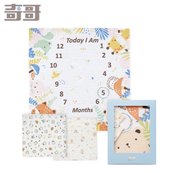 奇哥 Chic”a”Bon寶寶成長紀錄紗布巾禮盒【佳兒園婦幼館】