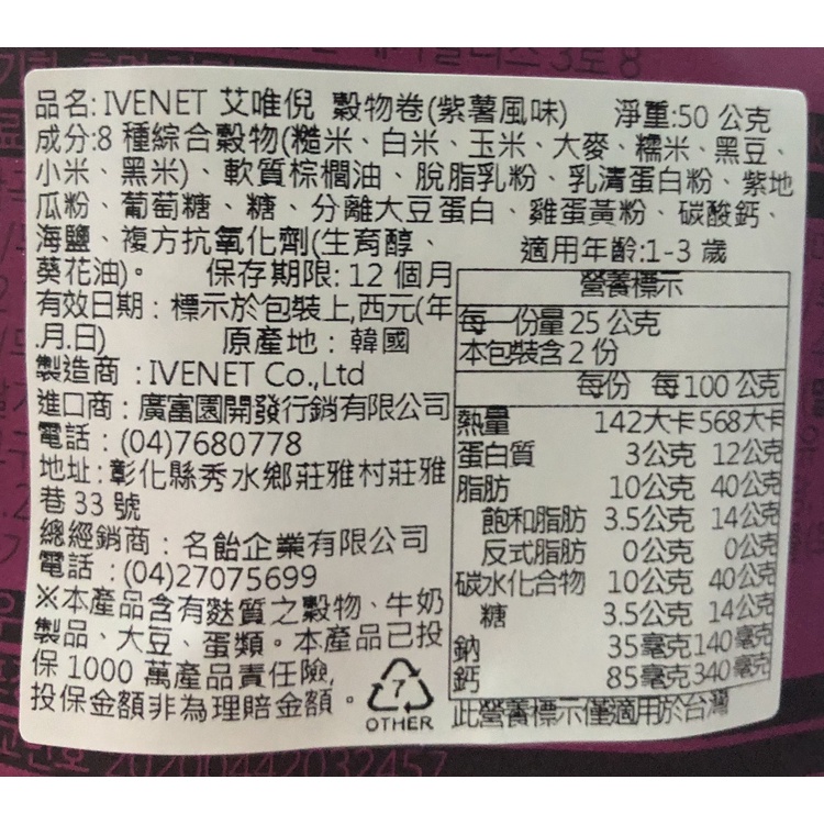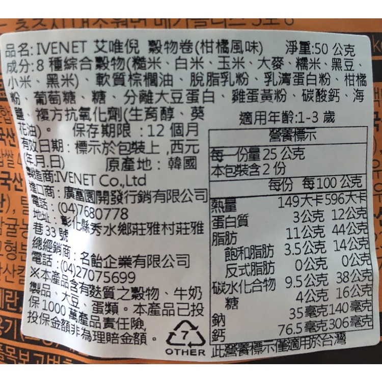 韓國 ivenet 艾唯倪 穀物卷50g-3種口味可選【佳兒園婦幼館】
