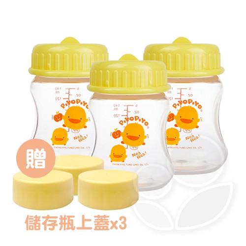 Piyo 黃色小鴨 寬口徑PP母乳儲存瓶140ml 3入【贈儲存瓶上蓋(3入)】【佳兒園婦幼館】