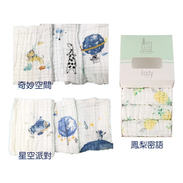 ilody 六層水洗方巾3入-3款可選【佳兒園婦幼館】