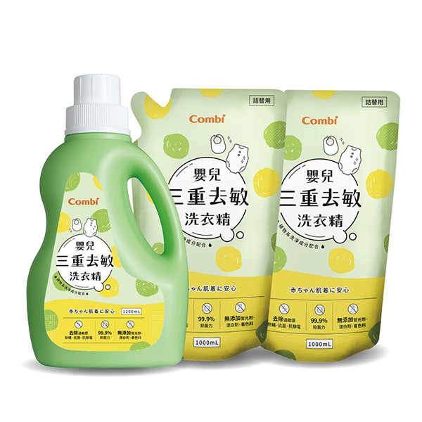 Combi 康貝 嬰兒三重去敏洗衣精促銷組(1瓶1200ml+2補1000ml)【佳兒園婦幼館】