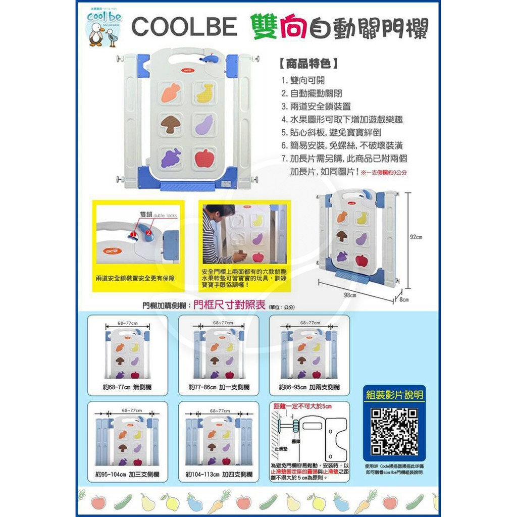 Coolbe酷比 雙向水果拼圖自動安全門欄【佳兒園婦幼館】