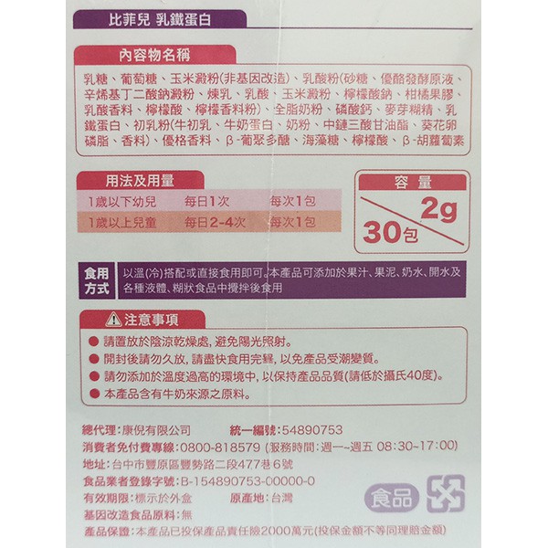 比菲兒 乳鐵蛋白 2g/30包【佳兒園婦幼館】