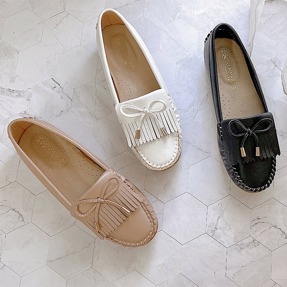【富發牌】日常流蘇蝶結莫卡辛豆豆鞋 女鞋 莫卡辛鞋 娃娃鞋 女生包鞋 便鞋 通勤鞋 小白鞋 流蘇鞋 輕量鞋 防滑鞋