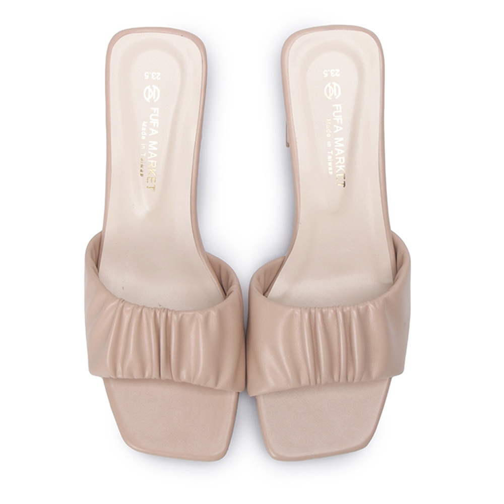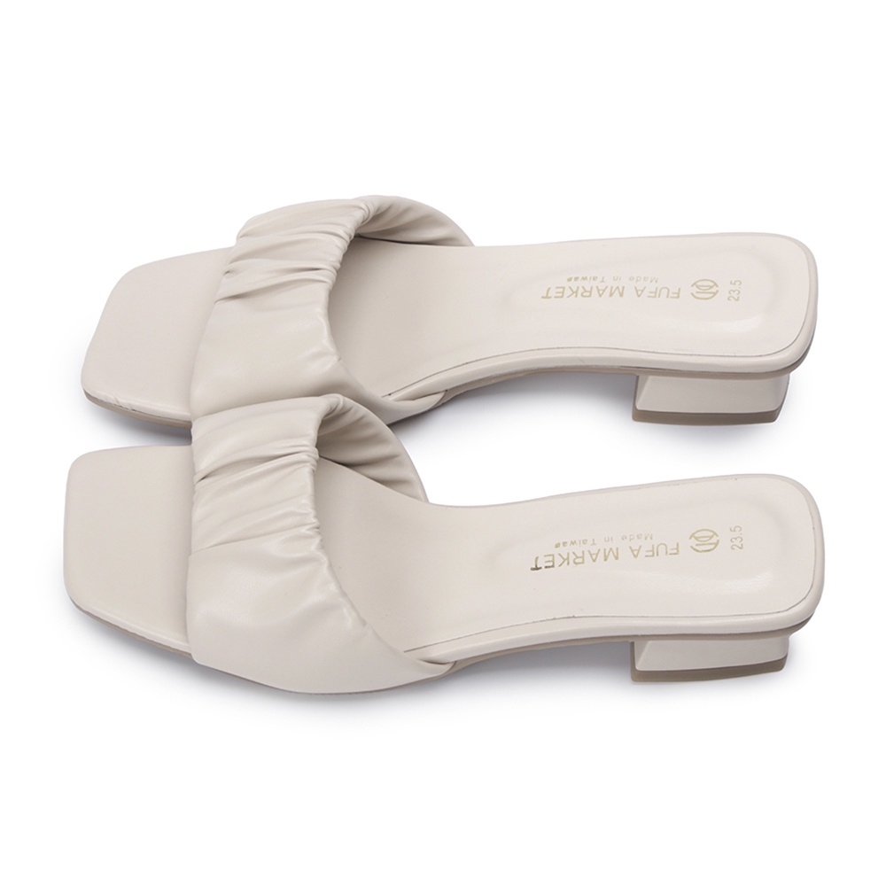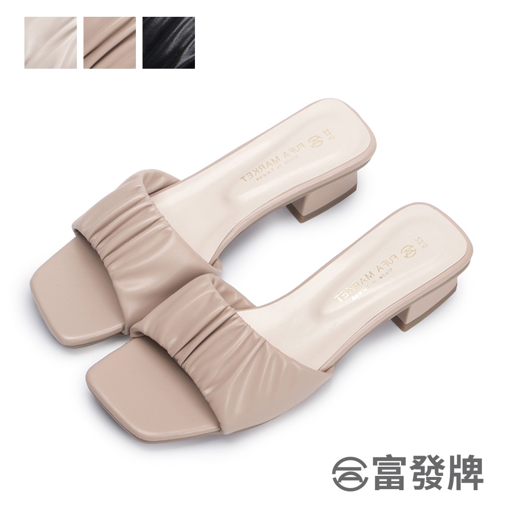 【富發牌】方頭抓皺低跟拖鞋 女鞋 涼拖鞋 方頭拖鞋 中低跟拖鞋 防滑拖鞋 涼鞋 低跟涼鞋 女拖鞋 女涼鞋