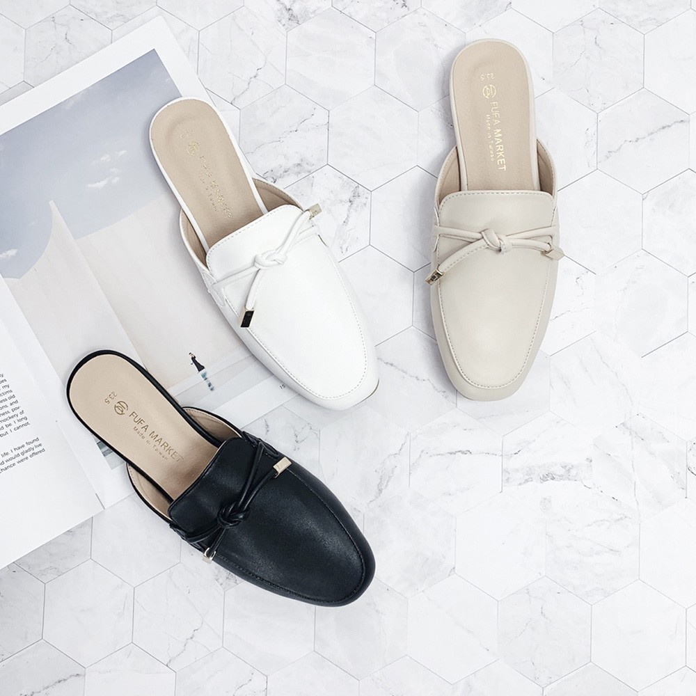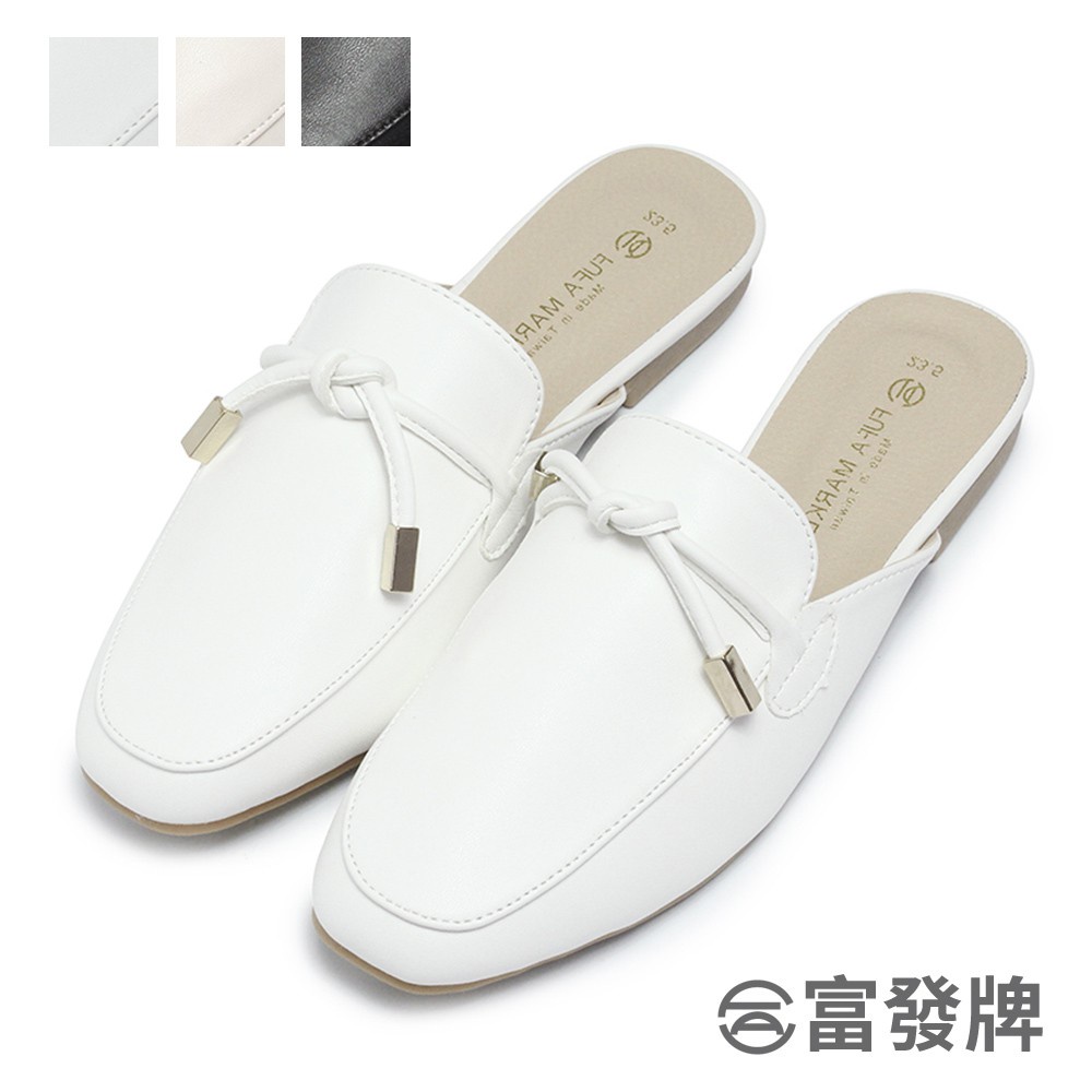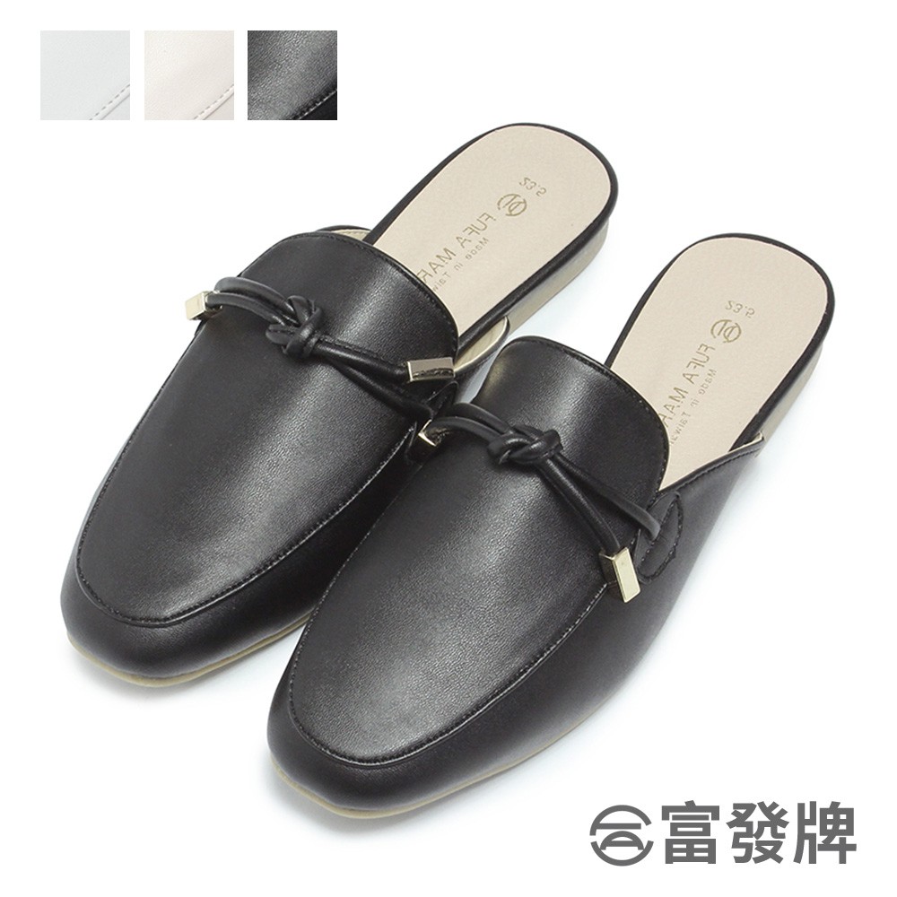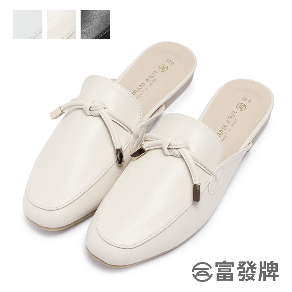 【富發牌】氣質綁結金飾平底穆勒鞋 穆勒鞋 無後跟懶人鞋 懶人鞋 半拖鞋 休閒鞋 通勤鞋 女鞋 涼拖鞋 皮革半拖鞋 富發