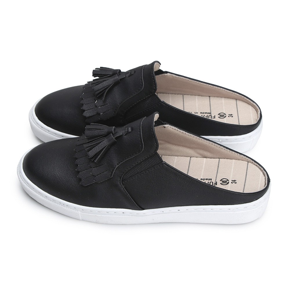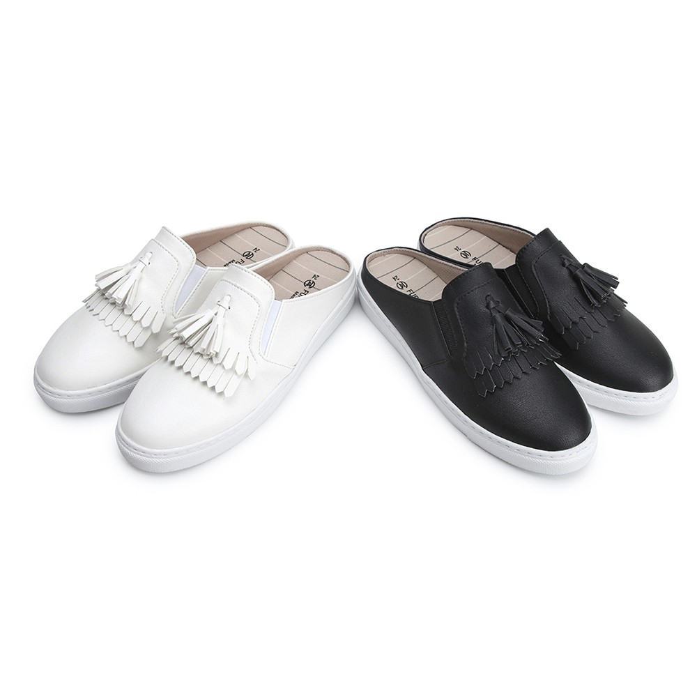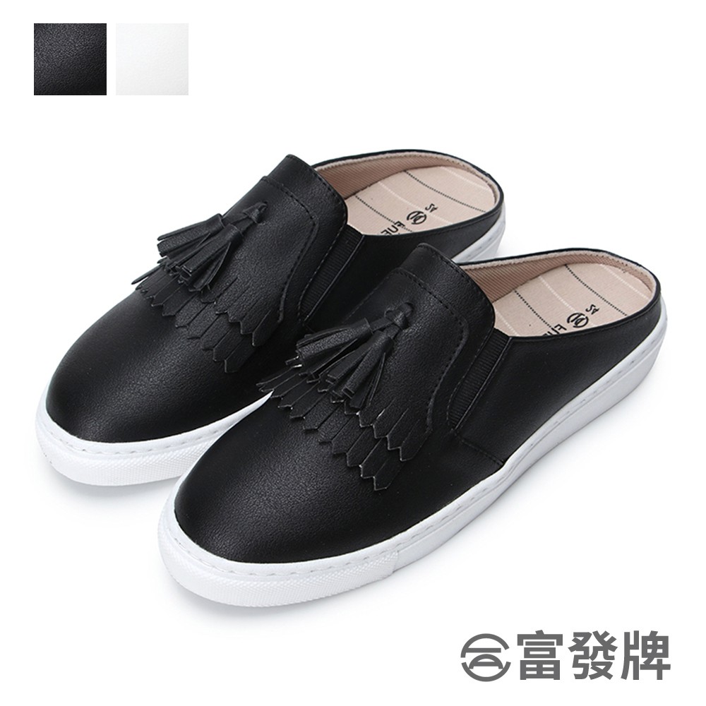 【富發牌】經典流蘇黑白穆勒鞋 休閒鞋 穆勒鞋 懶人鞋 女生半拖鞋 厚底穆勒鞋 厚底休閒穆勒鞋 黑色穆勒鞋 女生 厚底白鞋