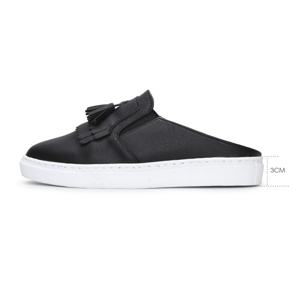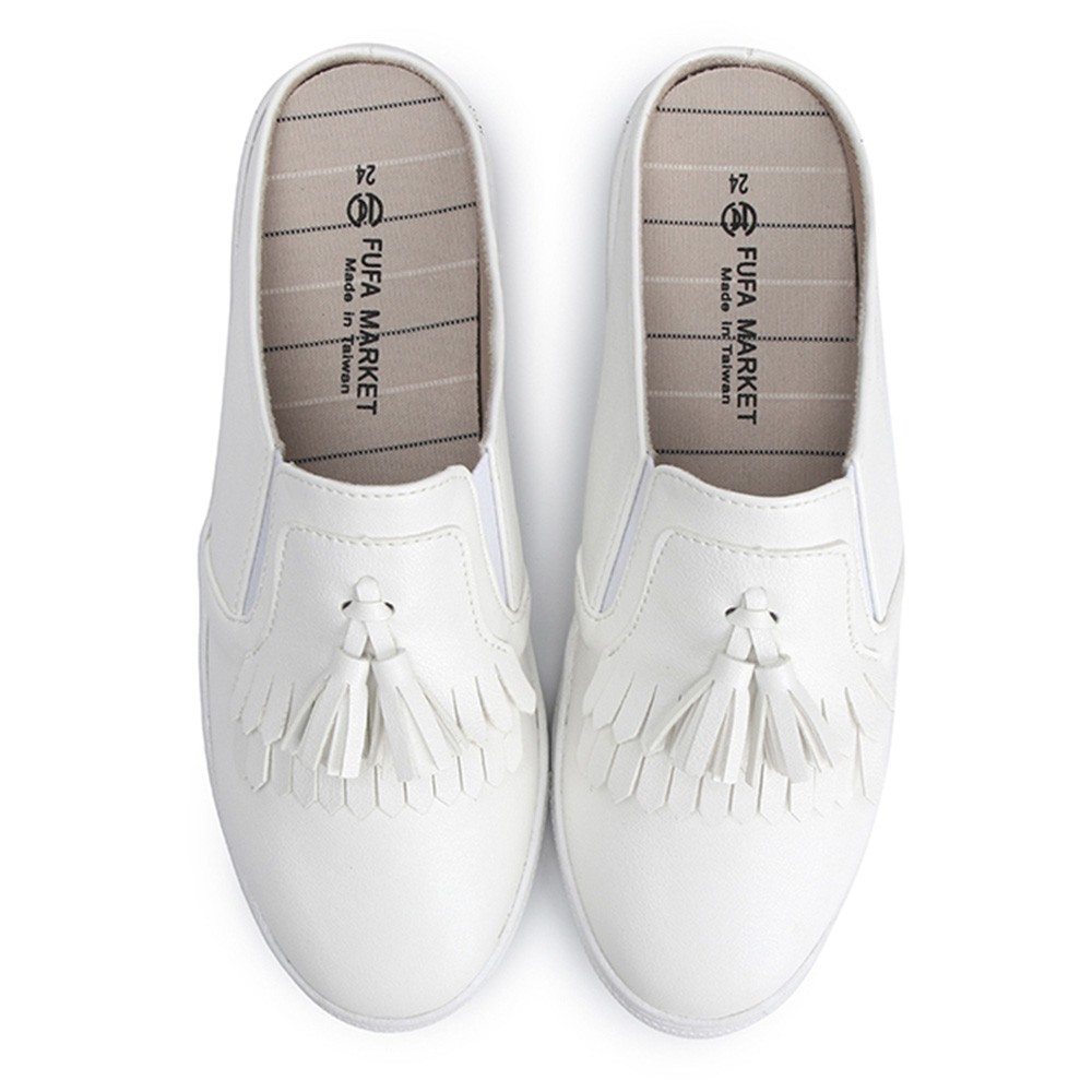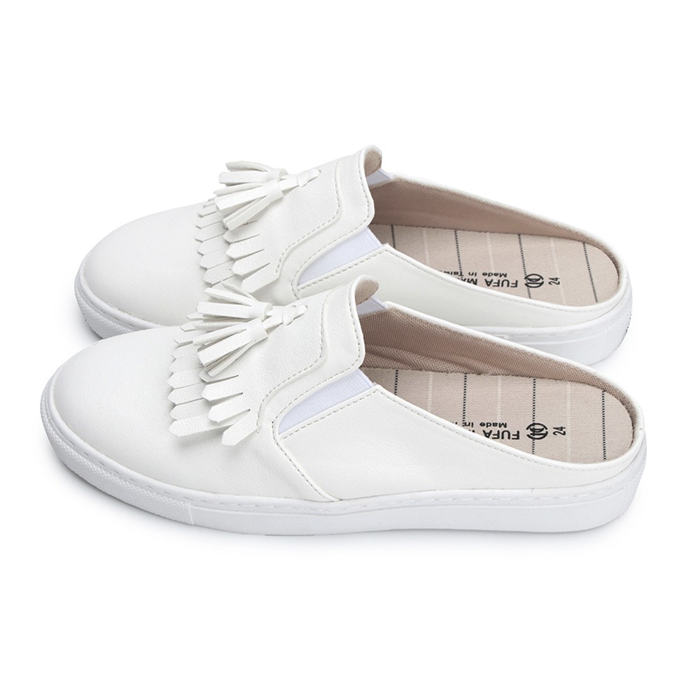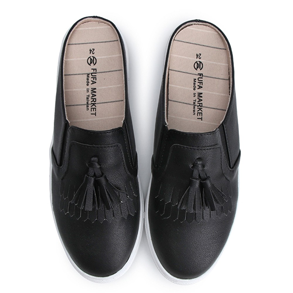 【富發牌】經典流蘇黑白穆勒鞋 休閒鞋 穆勒鞋 懶人鞋 女生半拖鞋 厚底穆勒鞋 厚底休閒穆勒鞋 黑色穆勒鞋 女生 厚底白鞋