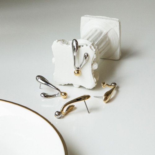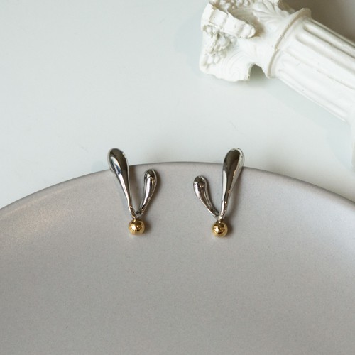 【ZANZAN冉冉】抗敏鋼針-金銀混搭V型金屬耳環【EK59BF008_SUS】