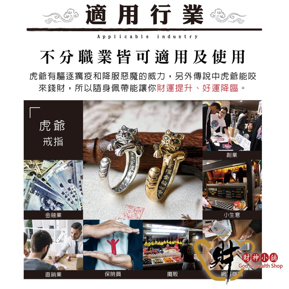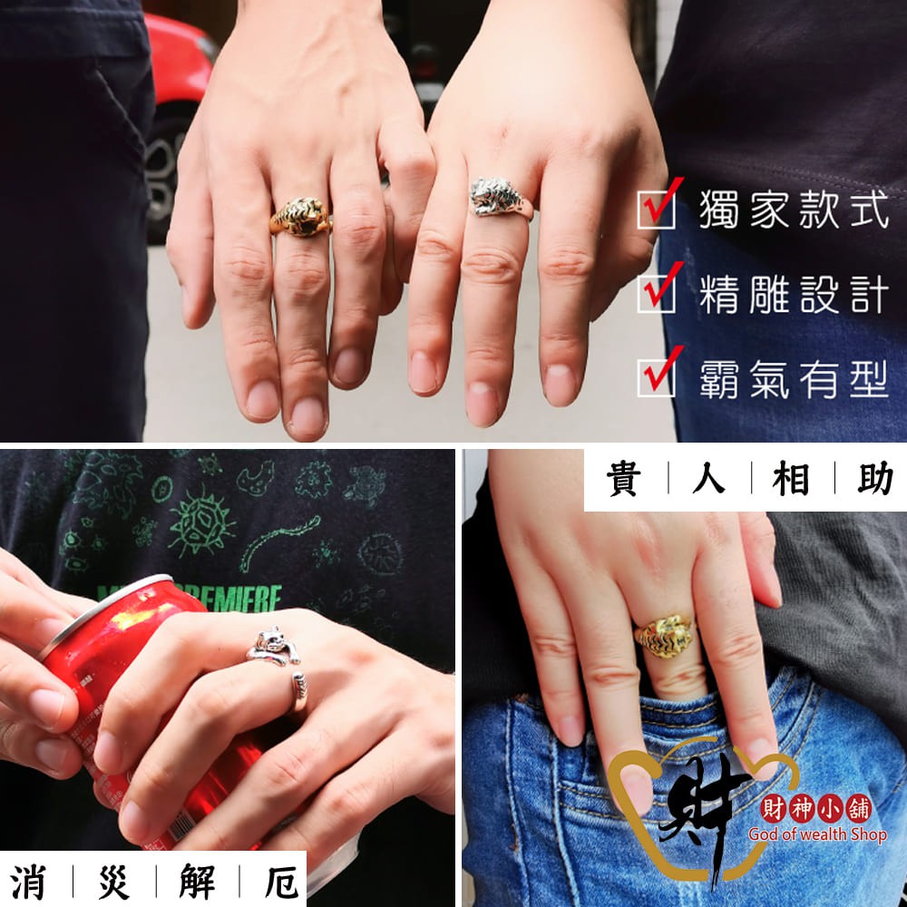 財神小舖 霸氣虎爺戒指 復古銅 活戒圍《含開光》RS-906-1|虎爺咬錢來 × 福氣平安到|開光招財戒指|虎爺護身開運