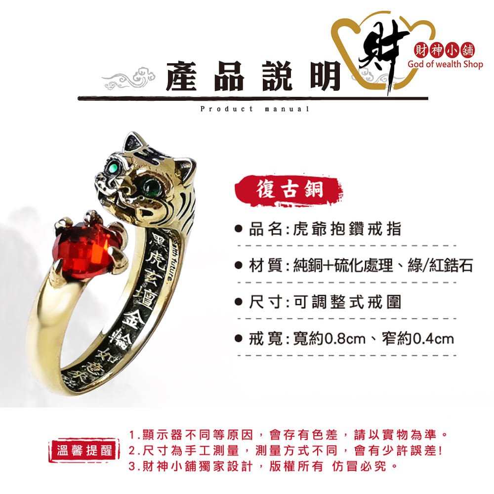 財神小舖 虎爺抱鑽戒指 復古銅 活戒圍 (含開光) RS-907-1|虎爺抱鑽×包你賺錢|開光招財戒指|虎爺轉運飾品推薦