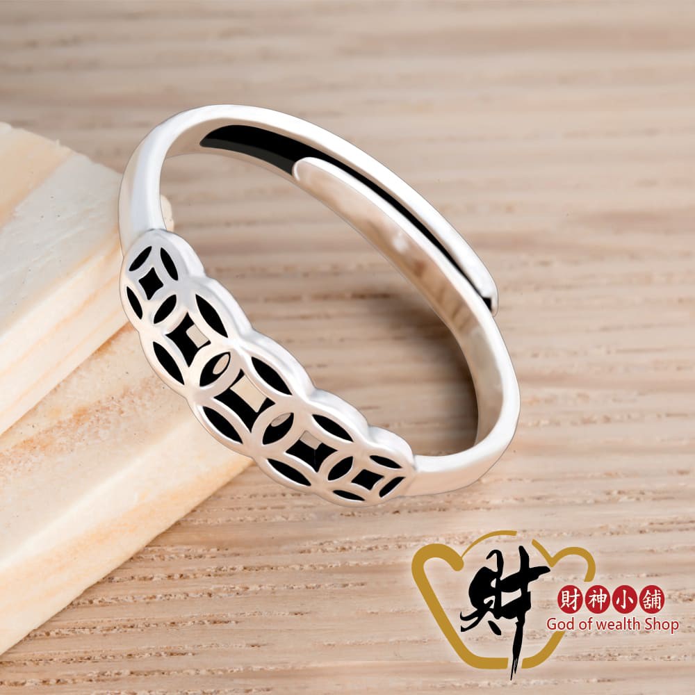 財神小舖 招財五帝錢戒指 925純銀 活圍戒《含開光》RS-015 幫助投資理財、加薪業績 五帝錢
