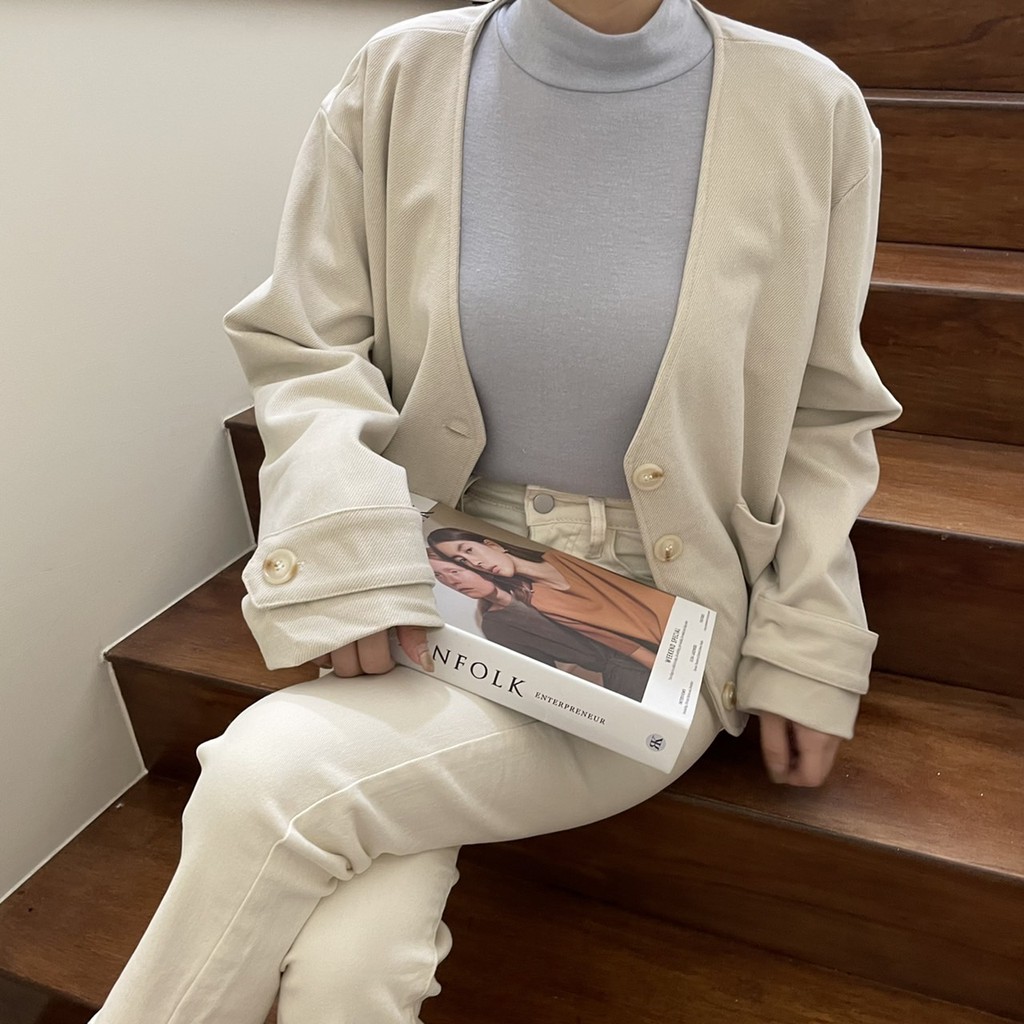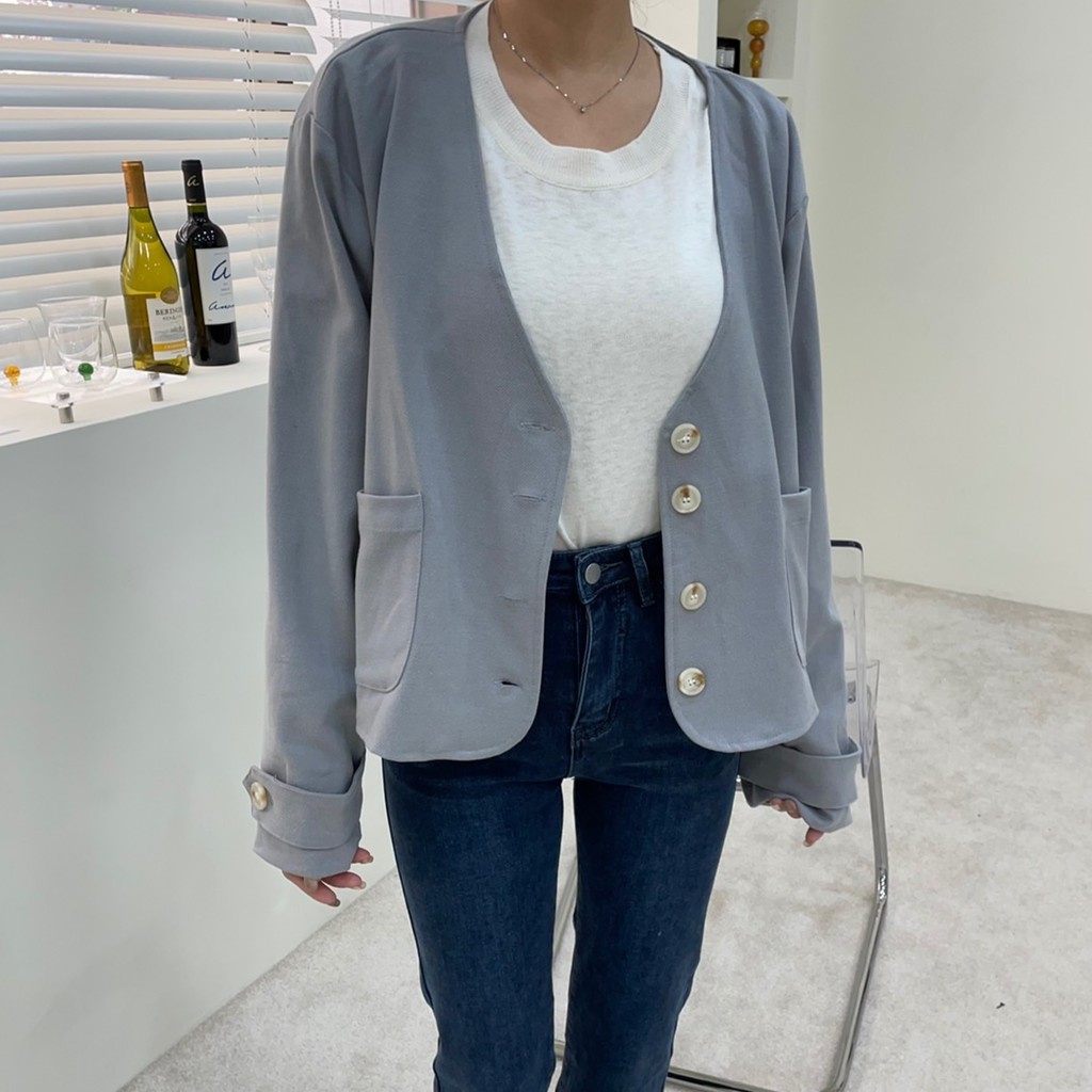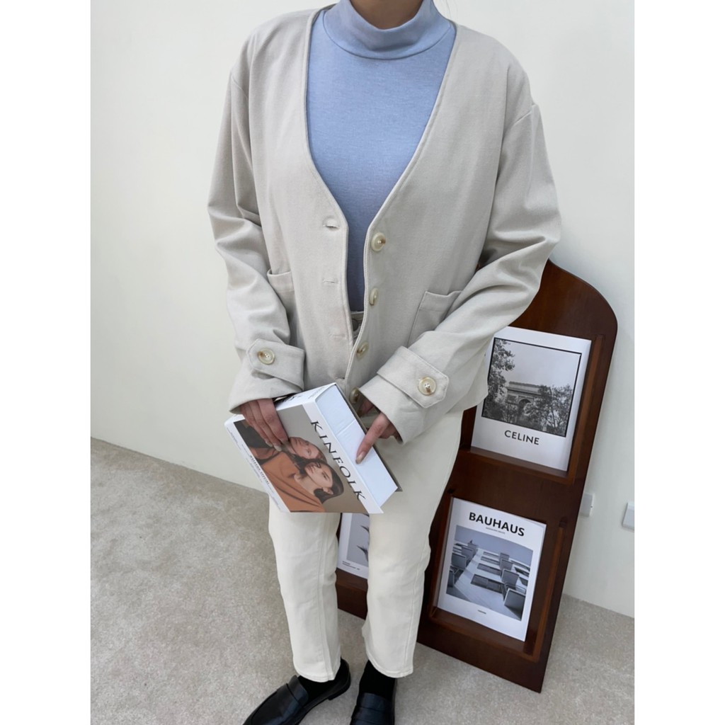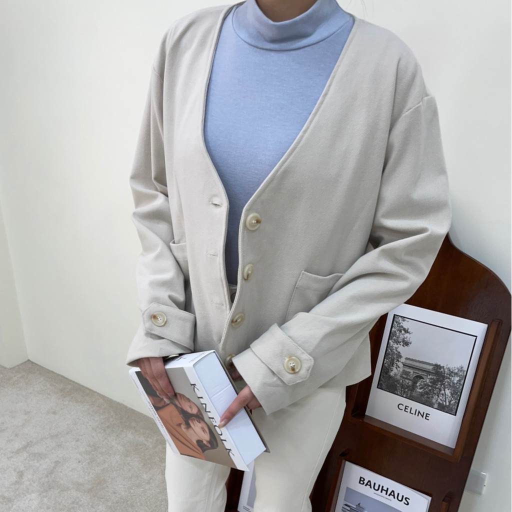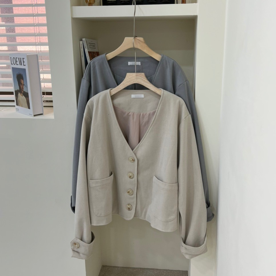 GRASS V領雙口袋柔軟毛呢外套 V領毛呢西裝外套 無領西裝外套 無領外套 V領外套 毛呢外套 D0033