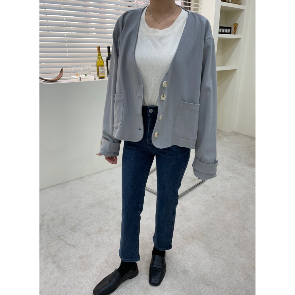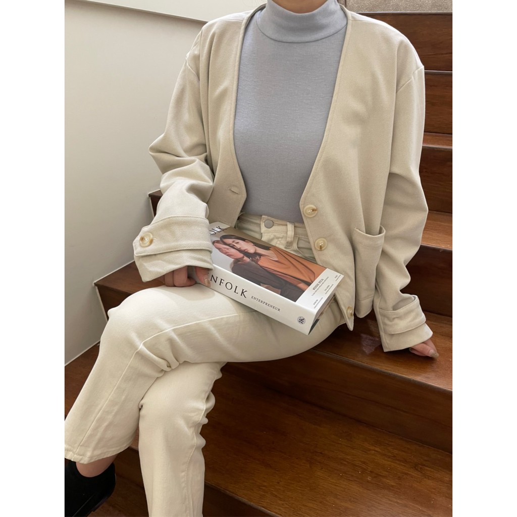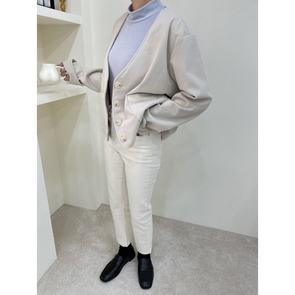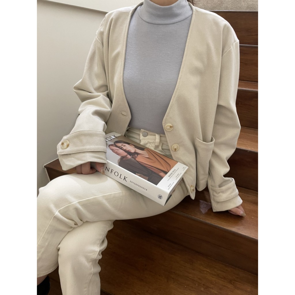 GRASS V領雙口袋柔軟毛呢外套 V領毛呢西裝外套 無領西裝外套 無領外套 V領外套 毛呢外套 D0033