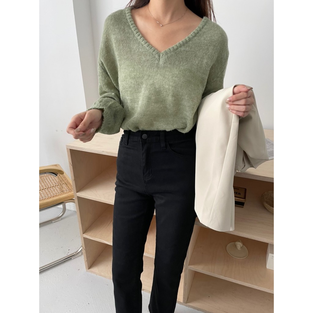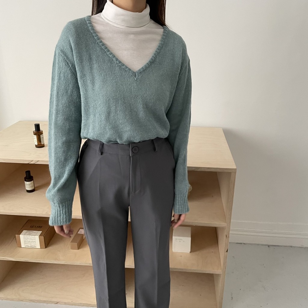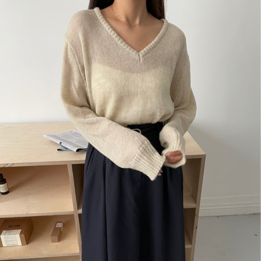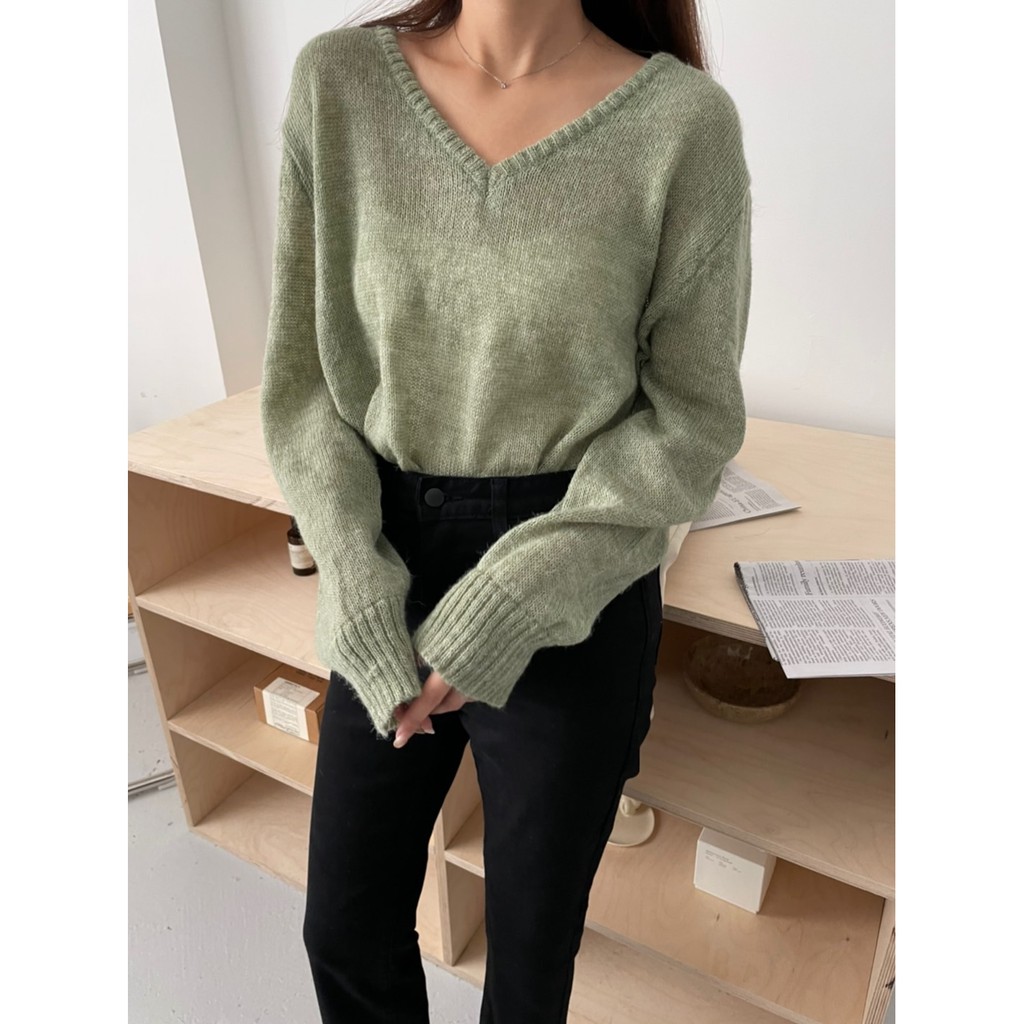 香草薄荷糖馬海毛V領針織毛衣 馬海毛針織 微透感針織毛衣 薄款針織毛衣 V領針織衫 GRASS [A310]