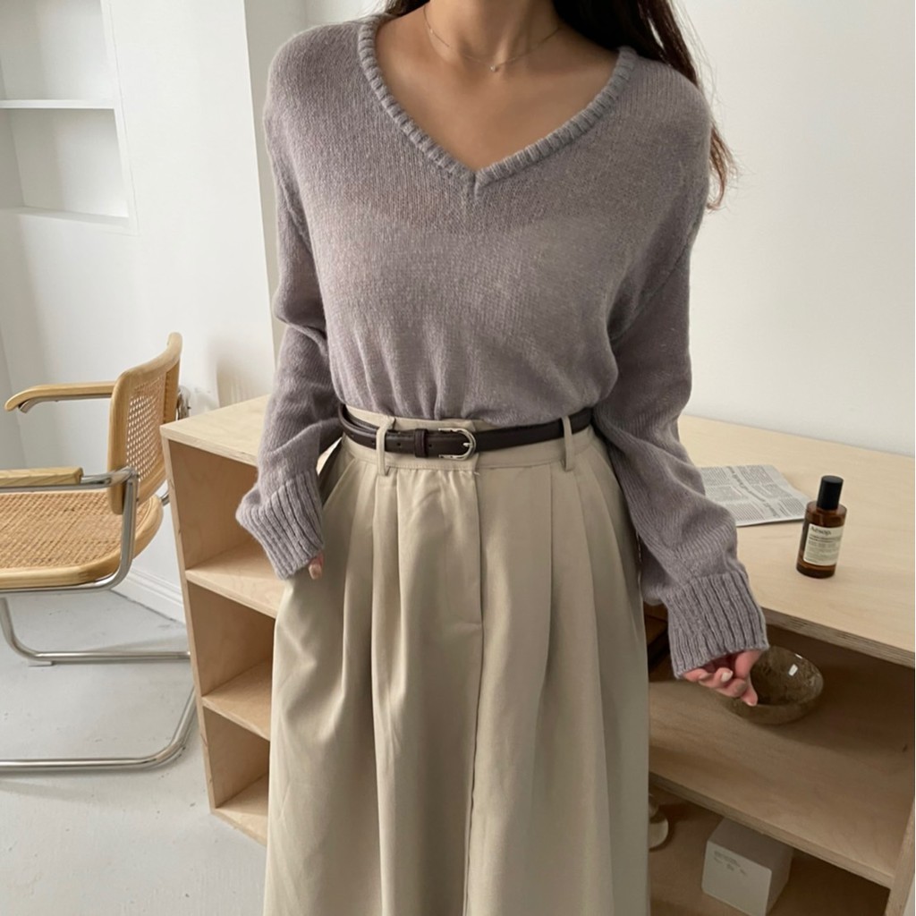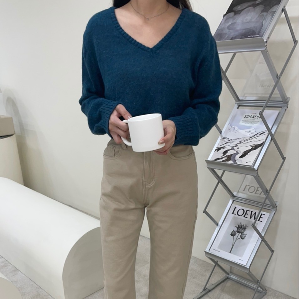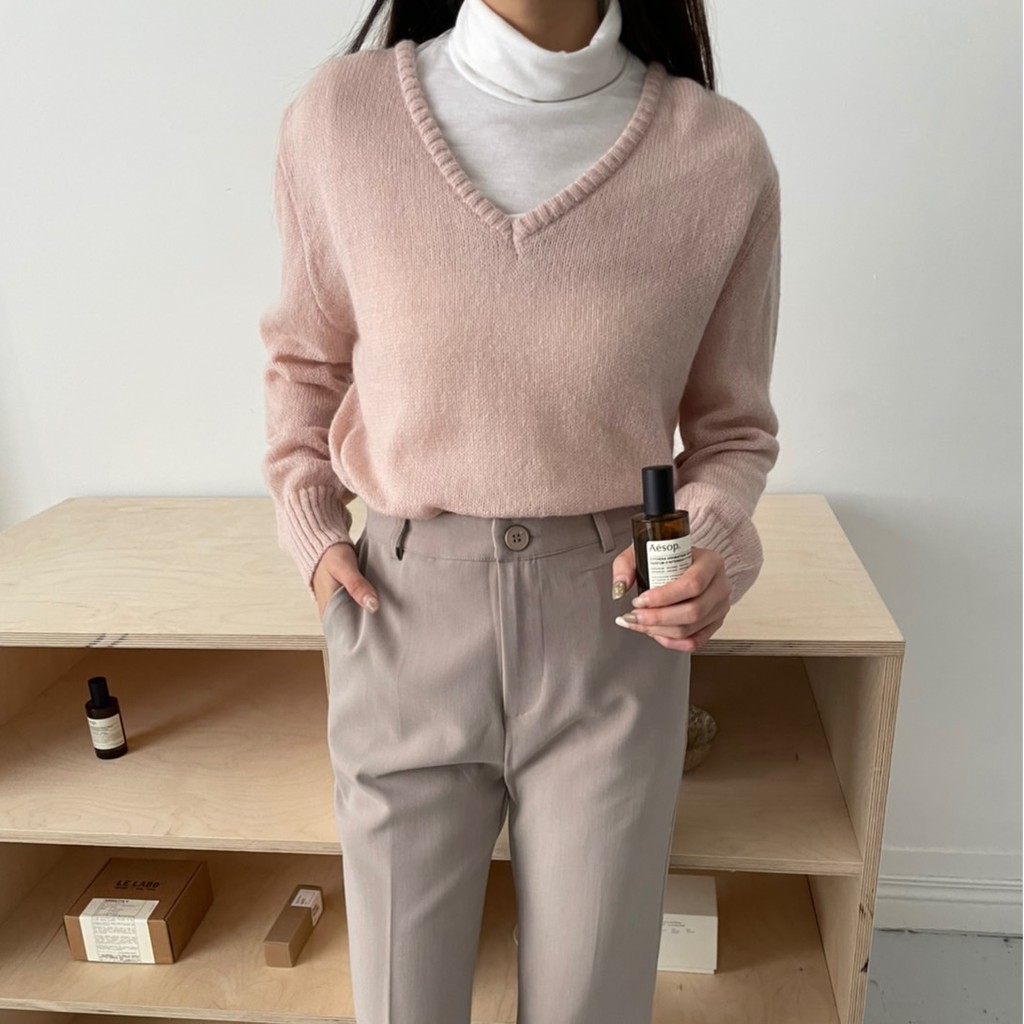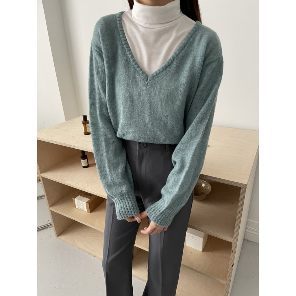 香草薄荷糖馬海毛V領針織毛衣 馬海毛針織 微透感針織毛衣 薄款針織毛衣 V領針織衫 GRASS [A310]