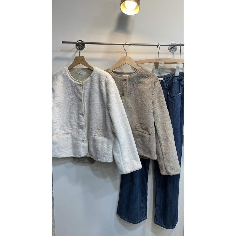 GRASS 熱門款超舒服兔毛絨小香外套 圓領小香外套 排釦外套 毛毛外套 毛絨外套 小香外套 [D7027]