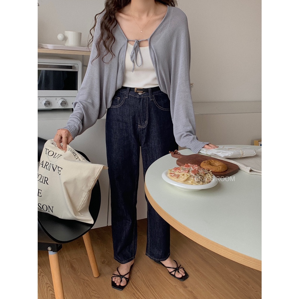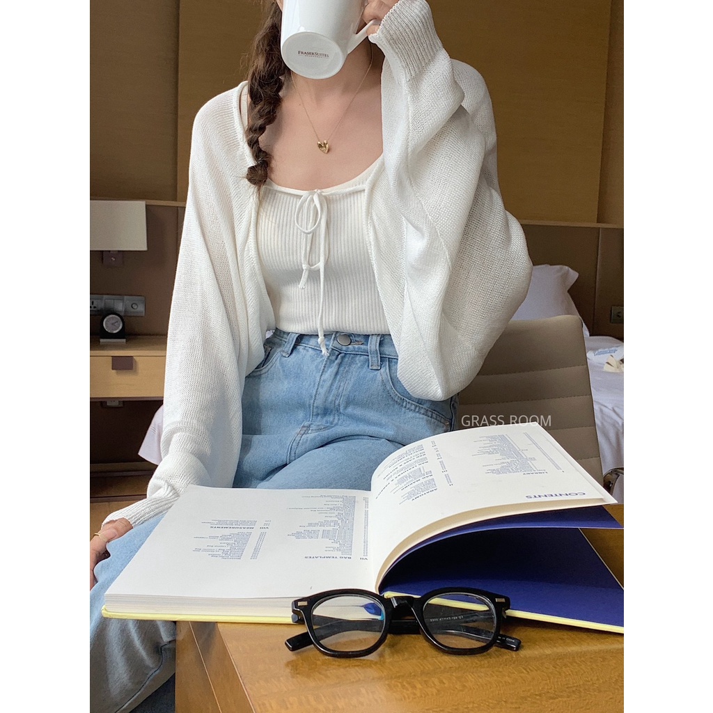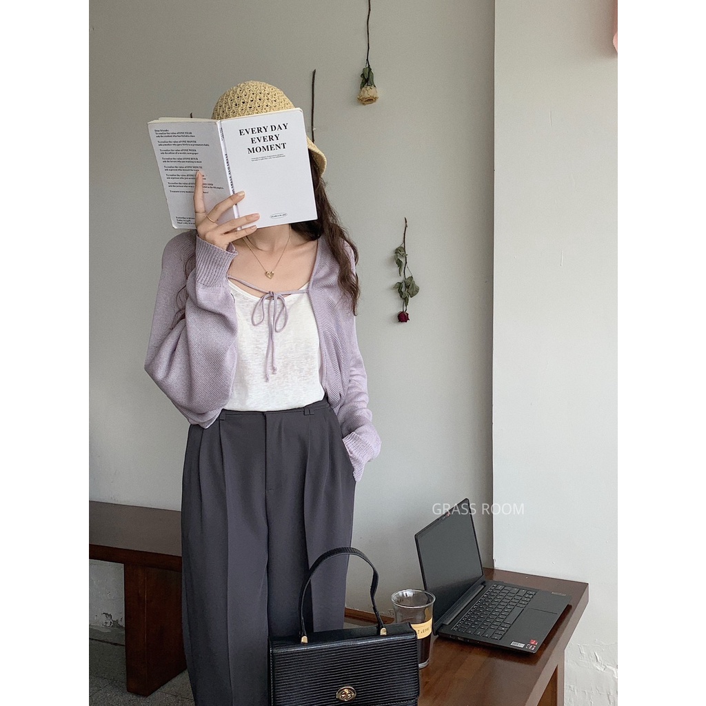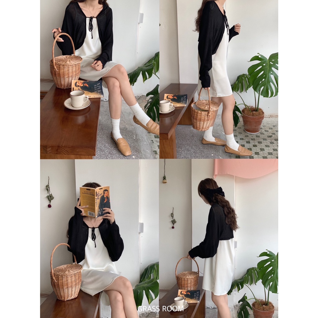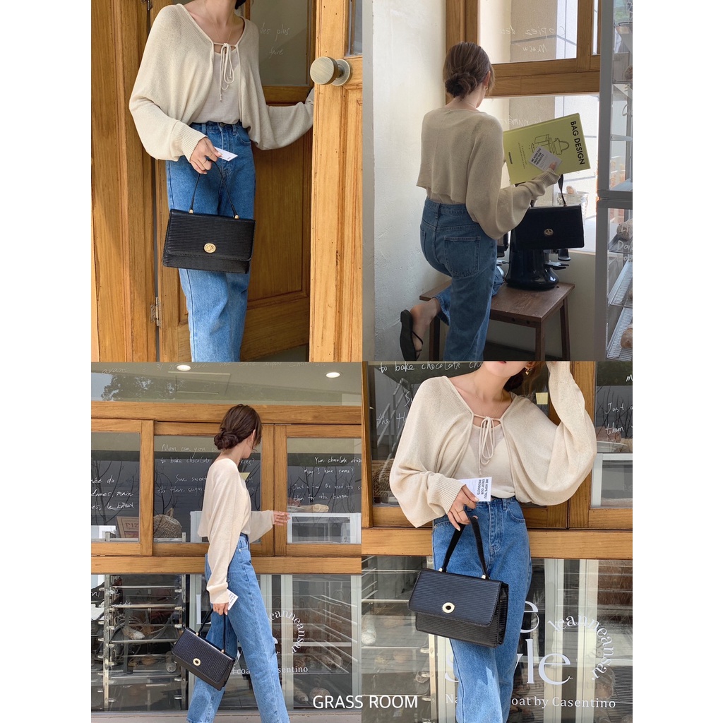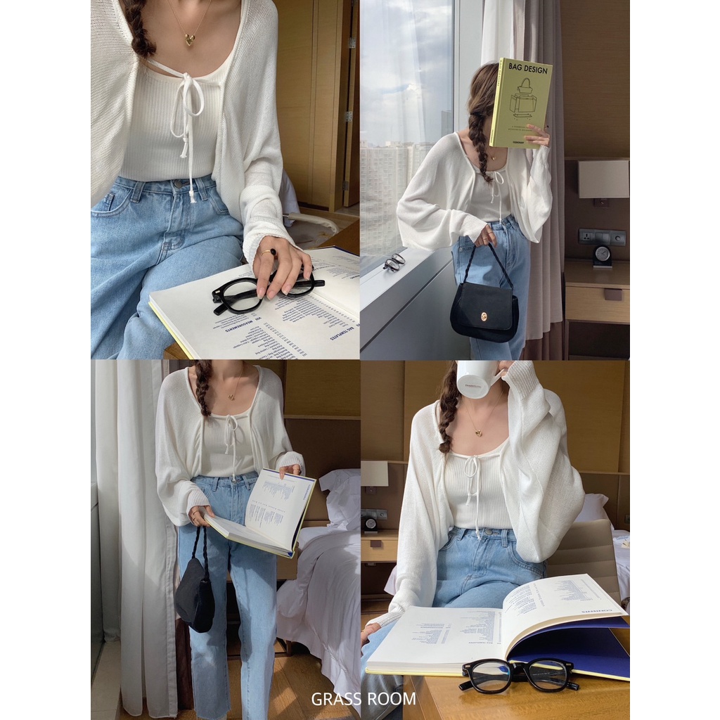 GRASS 浪漫來襲綁帶無領針織罩衫 短版無領針織衫 針織罩衫 綁帶針織衫 無領針織衫 針織外套 針織上衣 [A690]