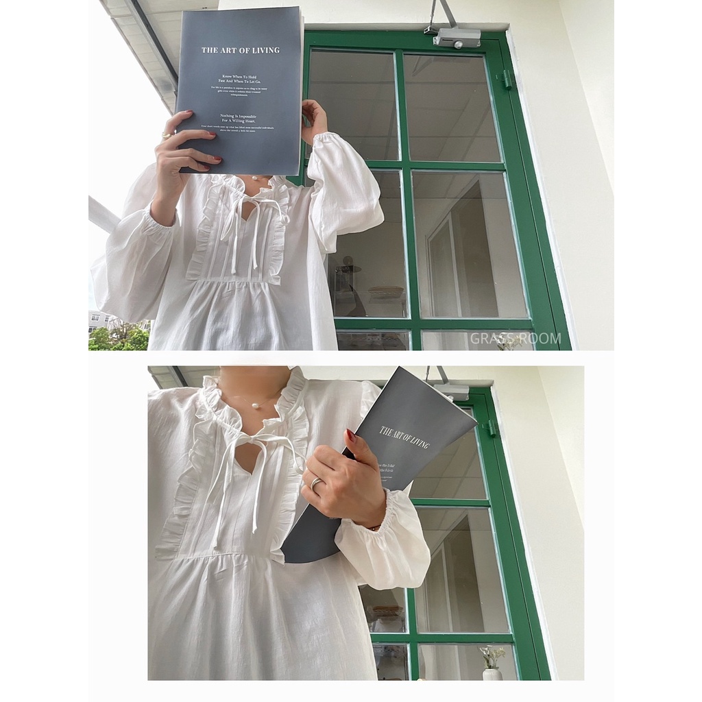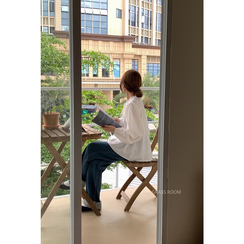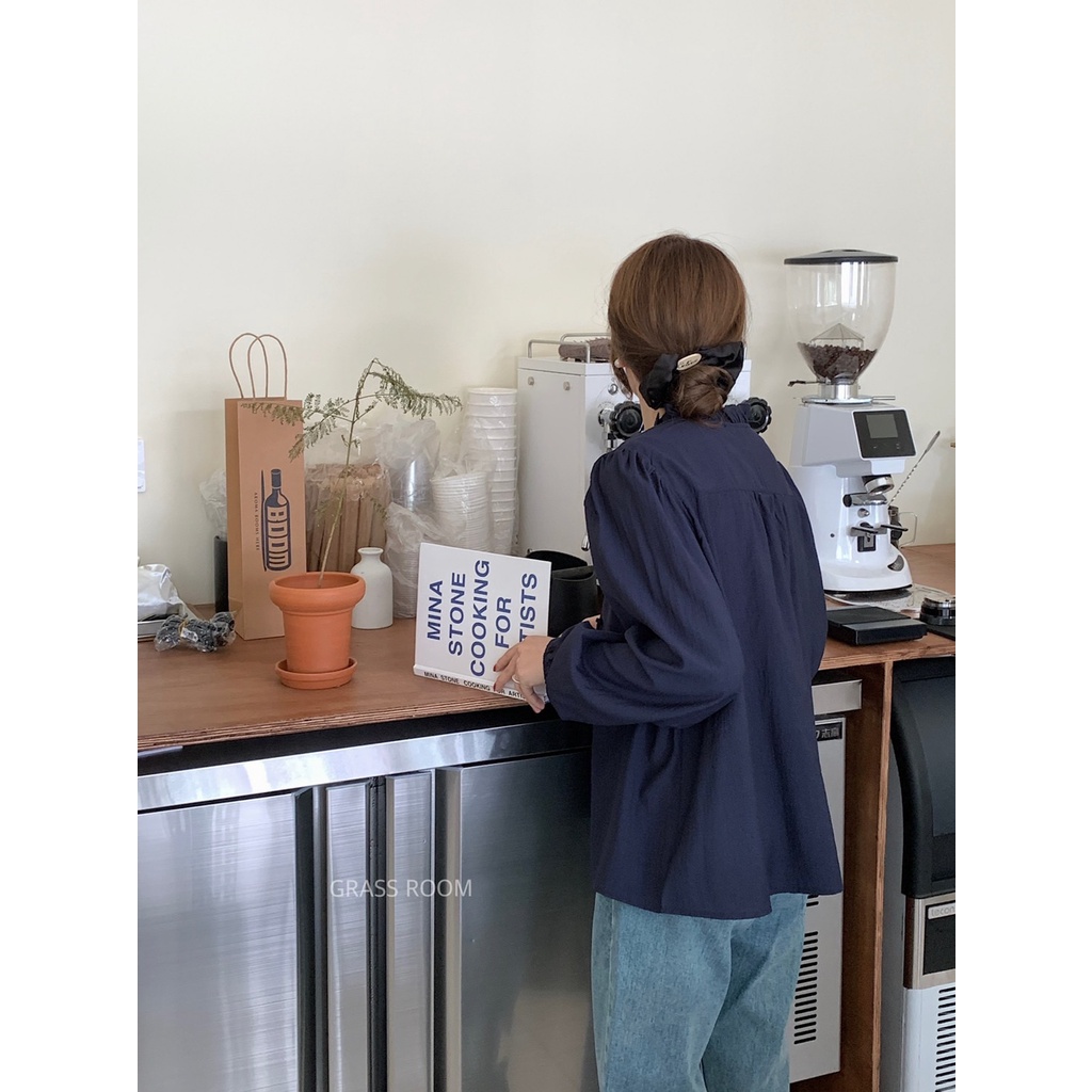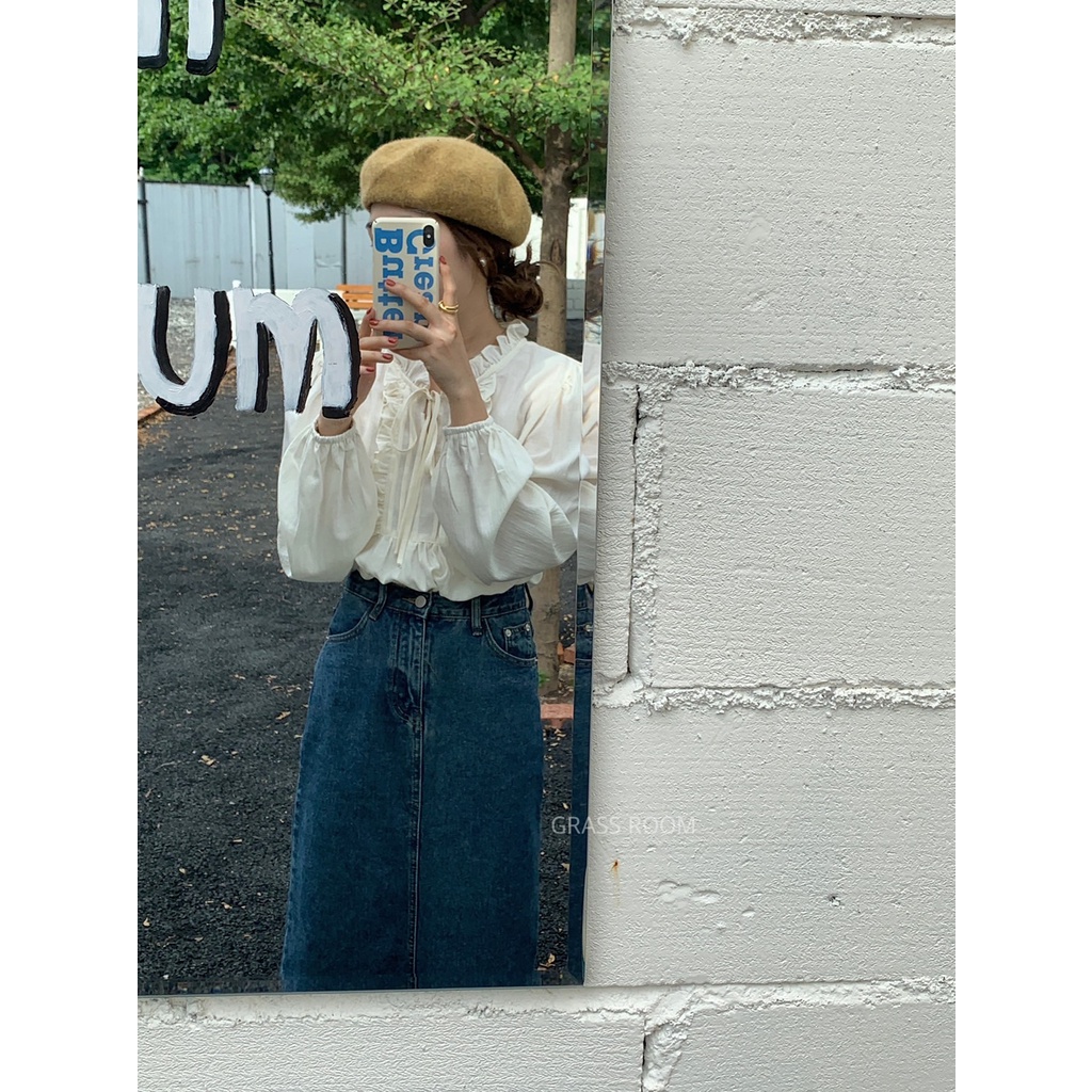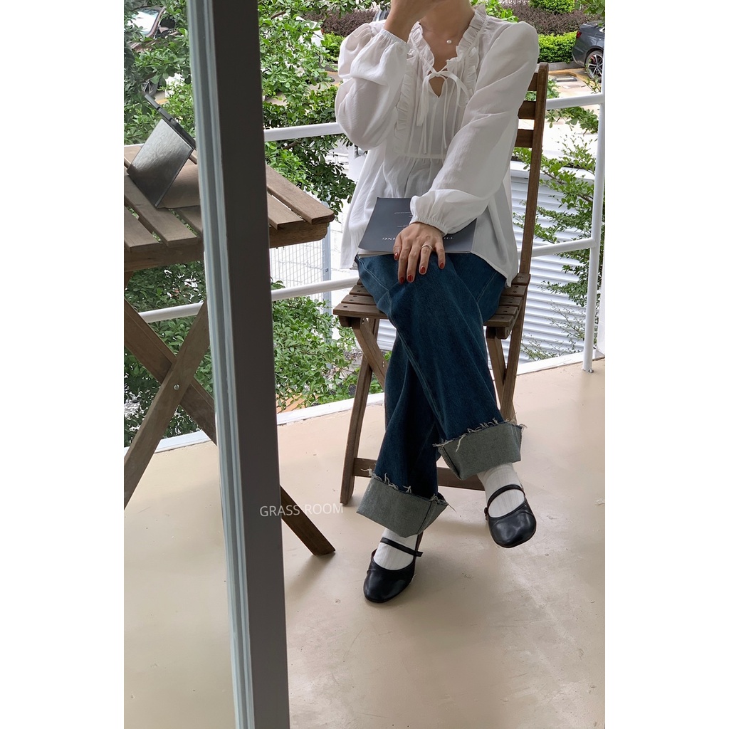 GRASS 法式木耳邊綁帶襯衫 綁帶襯衫 木耳邊襯衫 木耳邊襯衣 長袖襯衫 縮口襯衫 浪漫襯衫 綁帶襯衣 [A137]