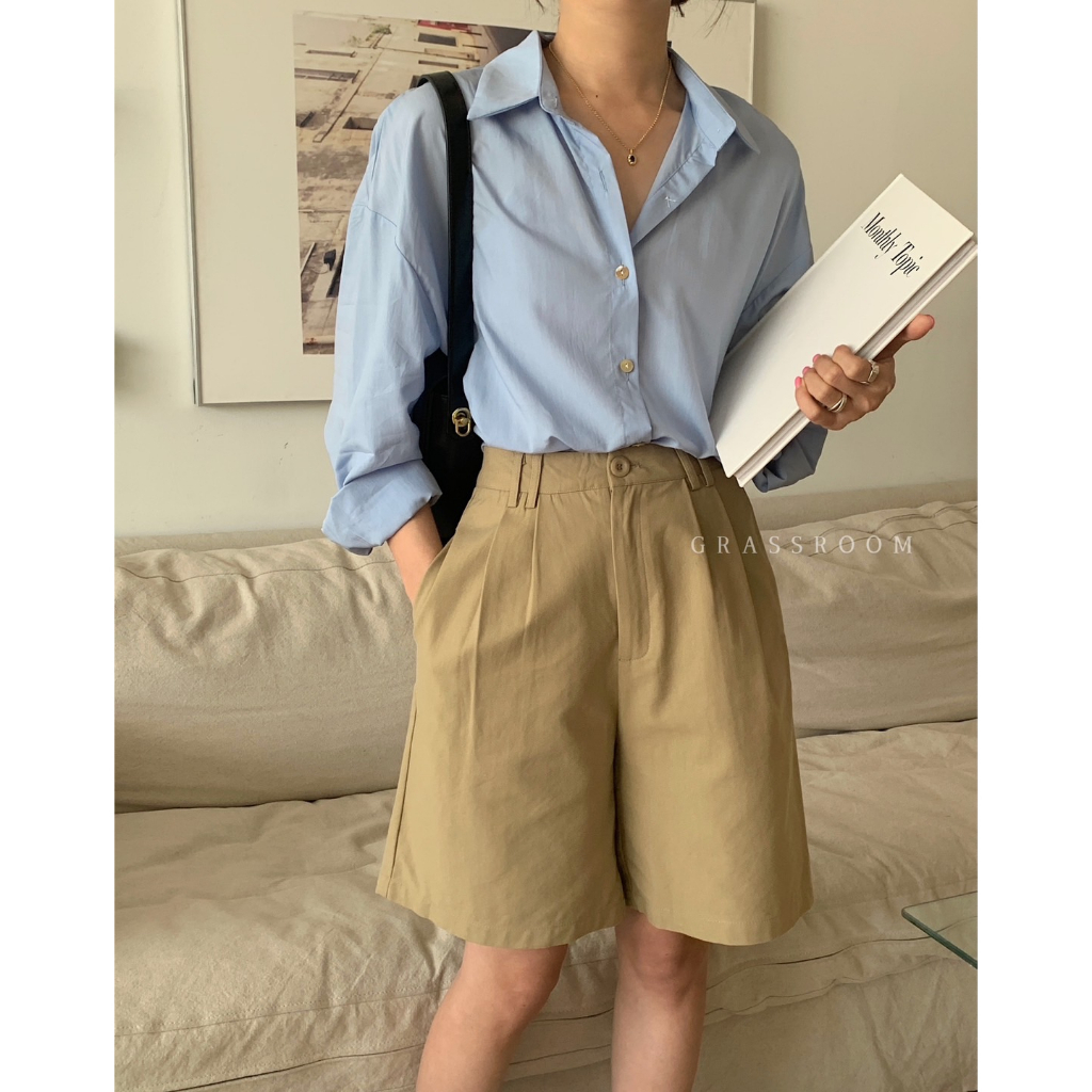 GRASS 主推款天絲翻領襯衫 排釦天絲襯衫素面襯衫 素色襯衫 翻領襯衫 翻領襯衣 簡約襯衫 防曬罩衫[A60005]