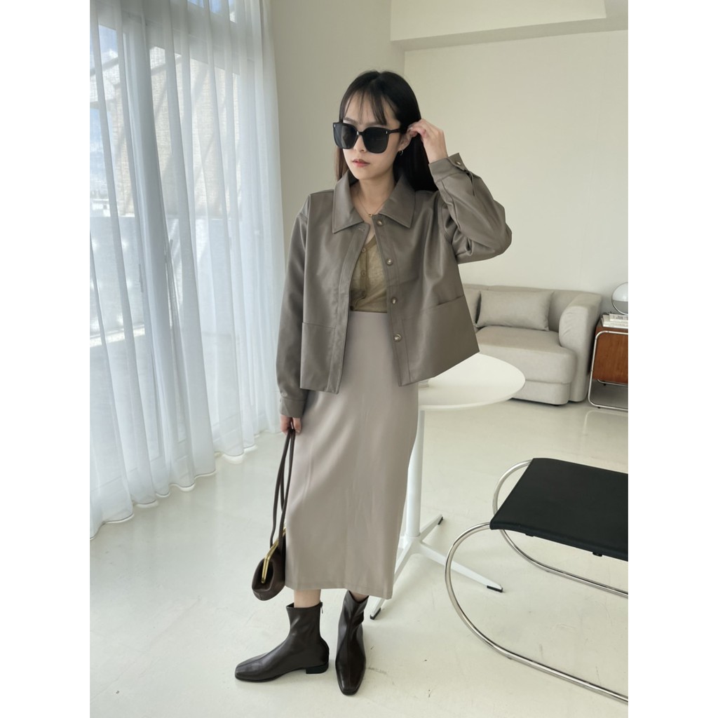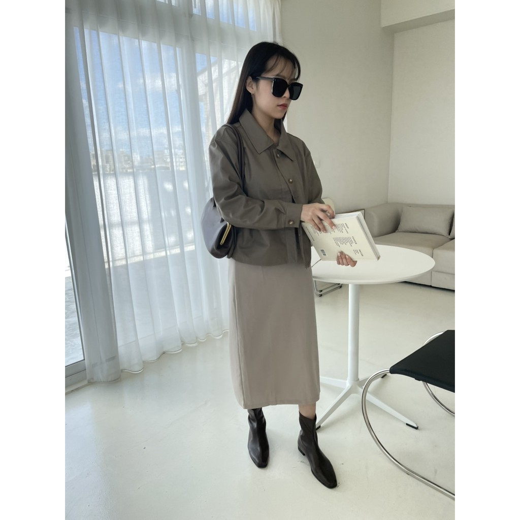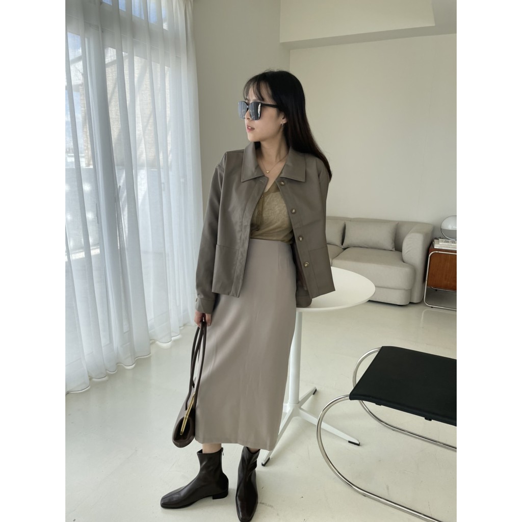 百搭款直筒西裝雪紡裙 直筒裙 高腰裙 中長裙 開衩裙 裙子 雪紡西裝裙 長裙 高腰直筒裙GRASS [C7008]