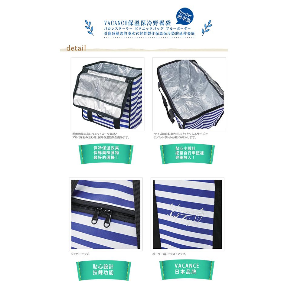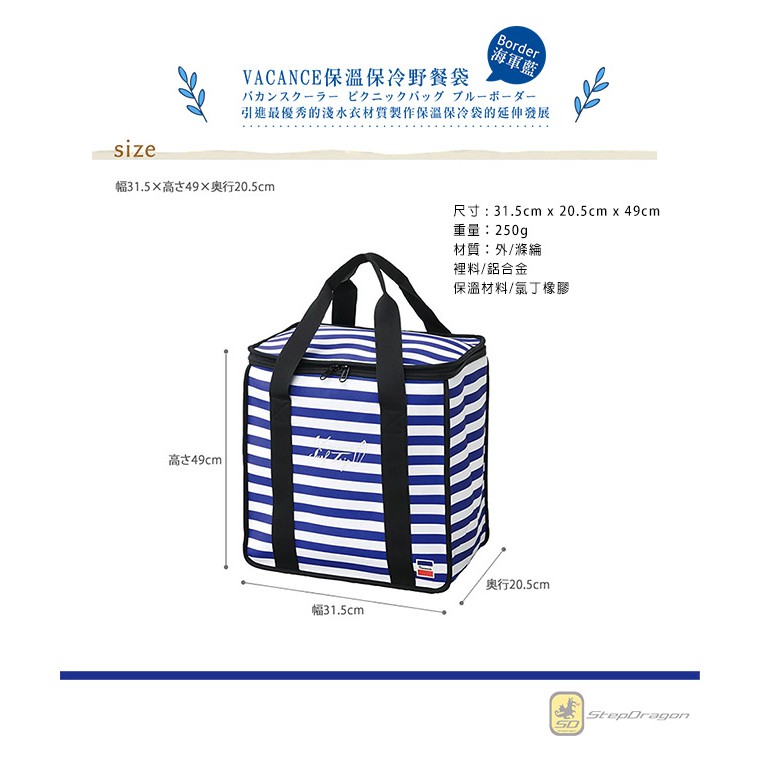 【日本 VACANCES】戶外郊遊 大容量 海軍藍 保溫保冷野餐袋 / 野餐 露營