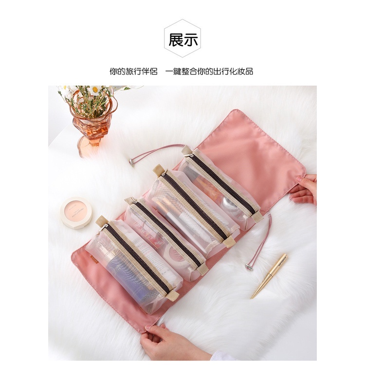 網紅熱賣女生四合一化妝包 洗漱包 大容量化妝品口紅彩妝化妝工具洗漱用品收納 女生包包 拆卸可組合 防潑水多款顏色任選