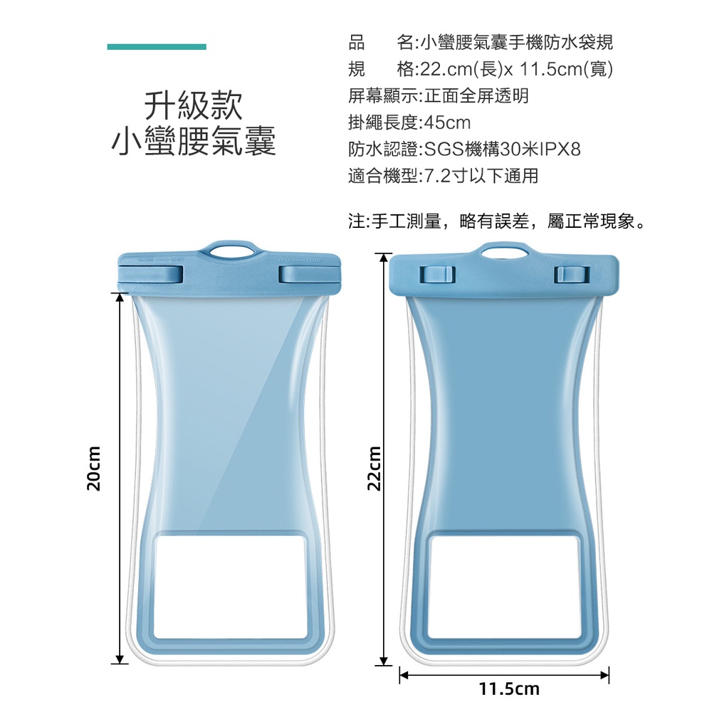 小蠻腰氣囊防水袋 手機防水袋 觸碰氣囊 手機防水套 防水手機套 夏日玩水不怕濕 可水底觸碰【7.2吋大尺寸】