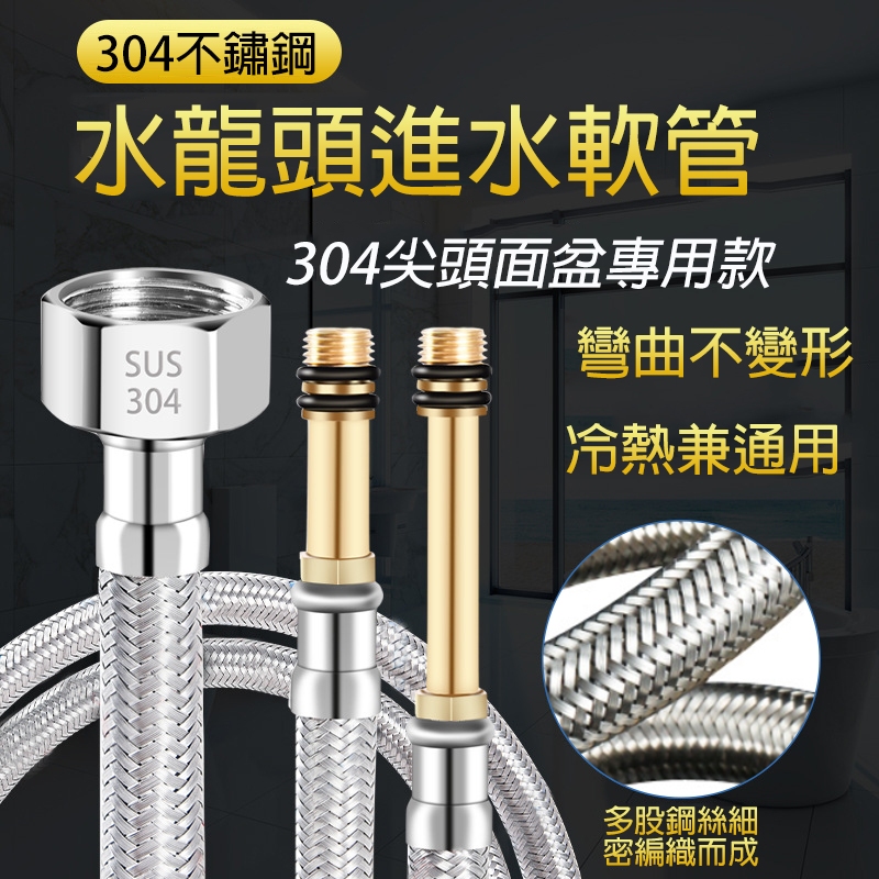 【曼德旺】304不鏽鋼冷熱軟管 廚房水龍頭進水管 熱水器4分管 馬桶金屬軟管 免工具 高壓防爆 正三元內管 冷熱上水