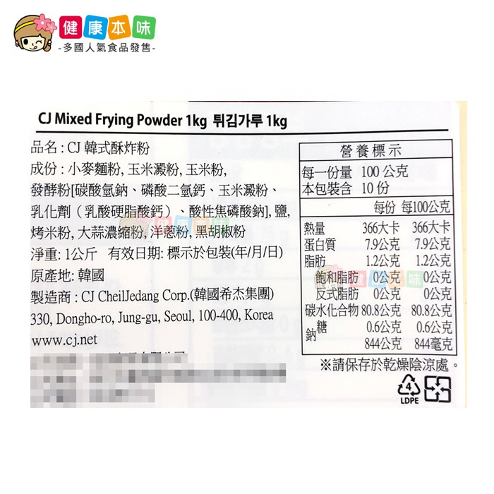健康本味 韓國CJ 韓式酥炸粉1公斤 [KR150352] 煎餅粉 韓式煎餅粉 韓式料理 炸粉 酥炸粉 炸蝦粉